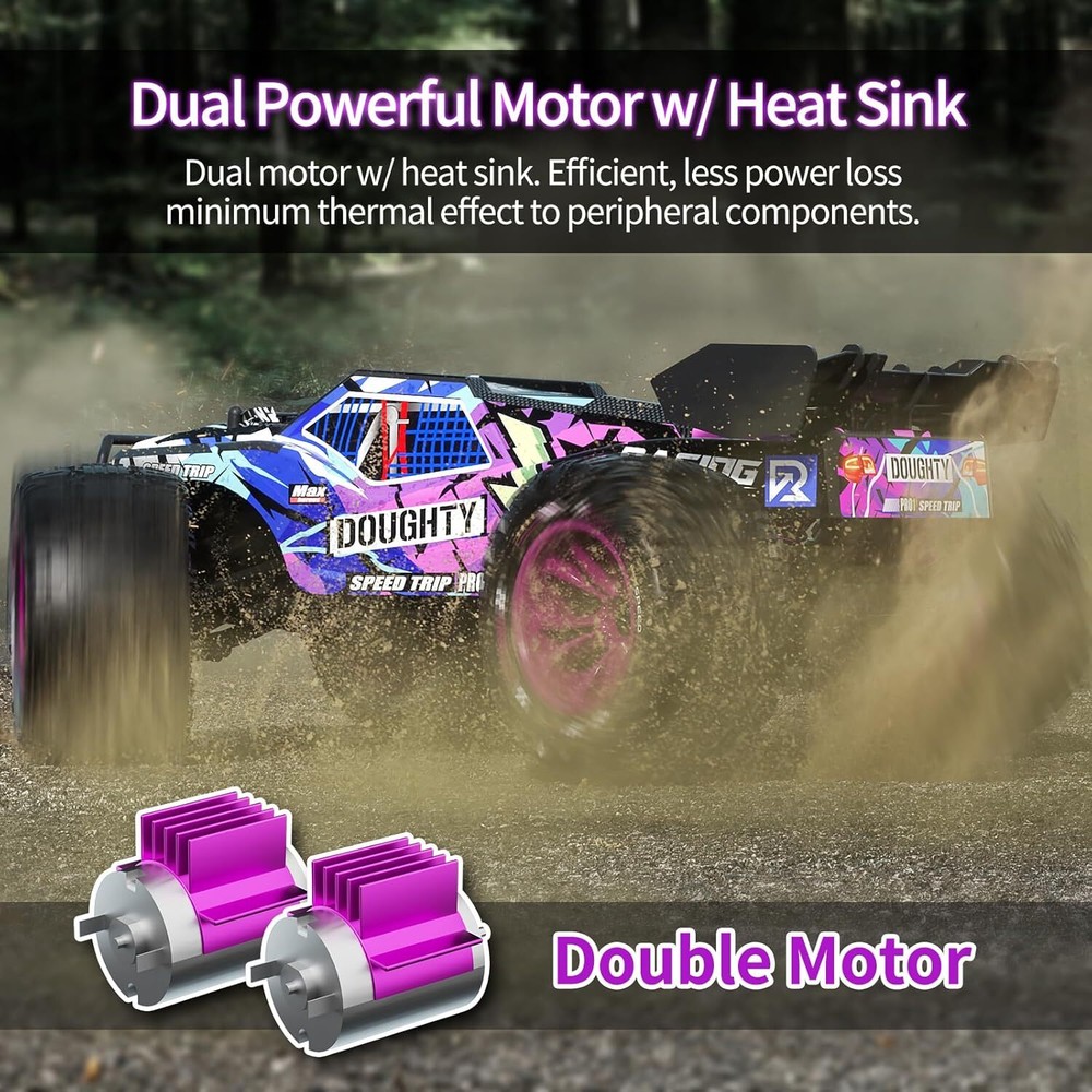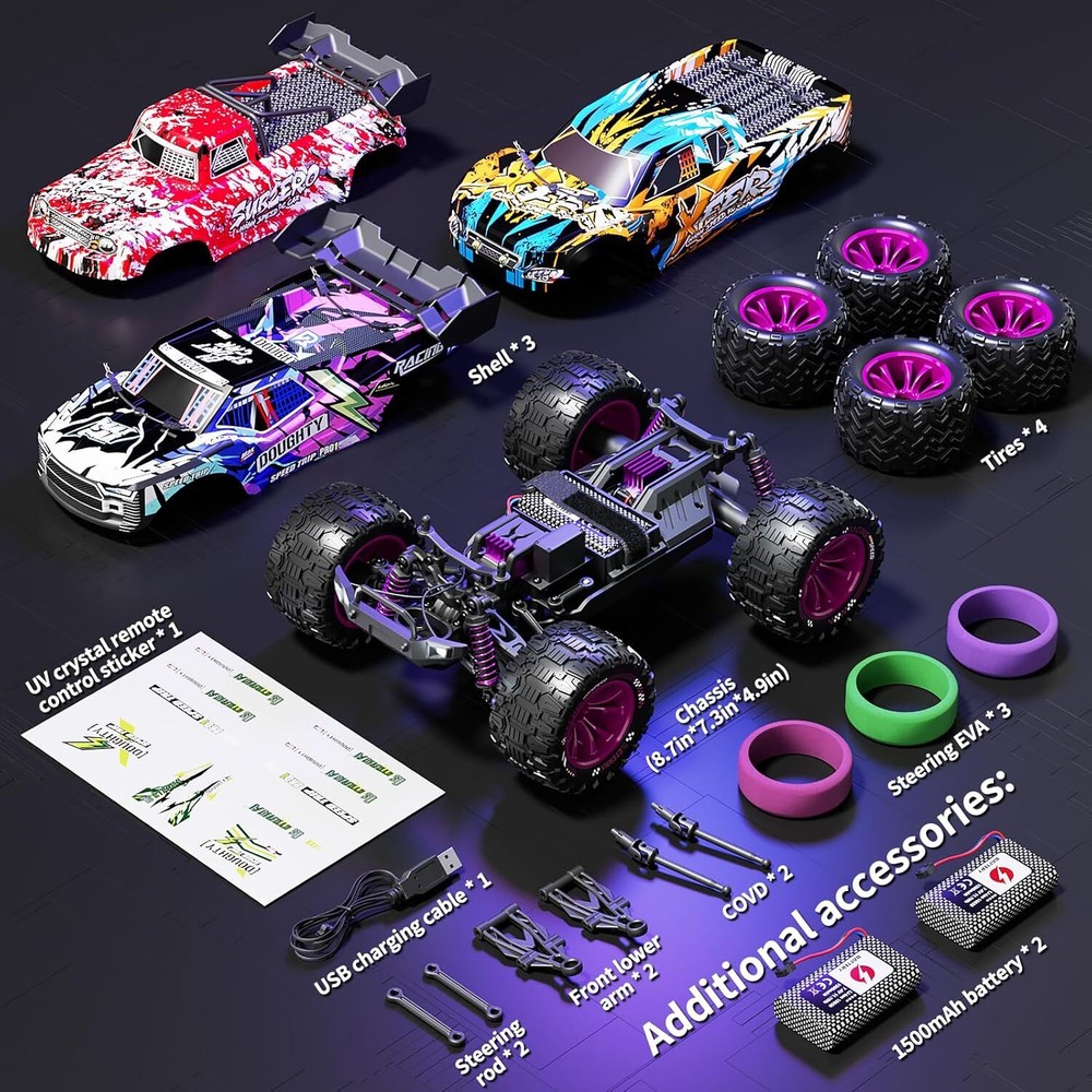This RC car is an absolute blast! The 4WD and powerful dual motors make it fly at 40 km/h while handling dirt, grass, and rough terrain like a champ. The all-terrain tires grip well, even climbing steep slopes with ease. Two included batteries mean double the playtime, and the responsive 2.4GHz remote gives precise control. Great build quality, fast shipping—perfect for kids and adults who love high-speed off-roading!