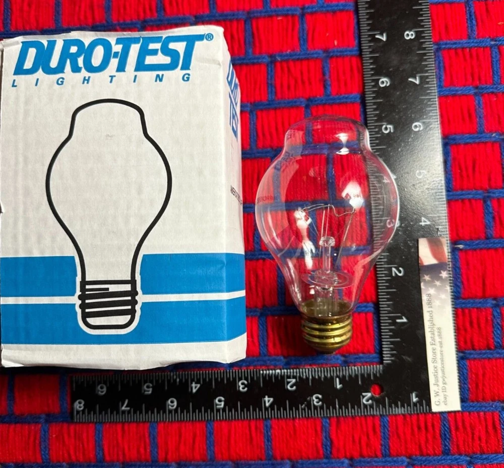 116w traffic signal lamp 120v - 125v clear light bulb 8000 hour 116 watt 1260 lumen tower lamp 120 volt for obstruction rough service world famous Duro-Test brand replacement for Duro-test 424 this is Duro-Test 735 BOX of one SHIPS for $0.07* as an Additional Item G. W. Justice Store Established 1888 "WE DO YOUR DOLLAR JUSTICE" please - contact us with any questions or problems whatsoever for personal Customer Service CALL TOLL FREE (ask eBay for my 800 number) Ships for $0.07* as an Additional Item, to any U. S. Zip Code; including AK, HI, P. R. or U. S. V. I. * Mix & Match SALE $8.88 ships $100.00 or more of qualifying items; or, first item to any U. S. Zip Code; including AK, HI, P. R. or U. S. V. I. and FREE INSURANCE AND FREE UPGRADE TO PRIORITY MAIL WITH DELIVERY CONFIRMATION and Shipping Discount on different qualifying Additional Items see below under "SAVE ON SHIPPING" for details on this and other S & H Discounts YES, WE HAVE MORE IN OUR EBAY STORE if you need 120 volt version of this in Philips see eBay item number 311371413524 or search our eBay store we have MORE SIZES OF TRAFFIC SIGNAL, AS WELL AS OTHER HARD TO FIND AND SPECIALITY BULBS, some ship for only 7 cents each ! (as an Additional Item) bookmark / visit our ebay store http://stores.ebay.com/gwjusticestoreestablished1888 ITEM DESCRIPTION; ONE BULB, BRAND NEW, factory fresh, tower obstruction signal lamp a.k.a. Traffic Signal lamp, for mix & match orders, studio photographic props not included; exact condition is brand new bought factory direct in bulk by us, we are an authorized seller from back in the day, photo approximate, taken in High Noon sunshine, sold as is, no warranty. Originally had one year warranty, no longer in effect. Original packaging will be included whenever possible, especially when bought in pairs, but we do not promise original packaging included, may be hand-wrapped to prevent breakage, . MEASUREMENTS; Length 4 & 3/8ths inches, Diameter 2 & 7/16ths inches M. O. L. 4.438 in 4.438" 3 inch center ELECTRICALLY INTERCHANGEABLE WITH STANDARD bulb, may be used in place of a 116A21 traffic signal lamp, when local codes permit such, with approximate beam candlepower similar, may vary with size of traffic head. CLEAR, multiple use, DECORATIVE, and TRAFFIC SIGNAL light bulb, GREAT FOR table lamps with metal socket rated for this wattage AND MORE, MADE BY Duro-Test in U. S. A. Base Size; regular (Edison, medium) HEAVY DUTY BRASS base, called E26 standard household for U. S. A. single contact medium screw RATED 8,000 HOURS IN TRAFFIC SIGNAL APPLICATION. must be burned base down (as in a table lamp with base pointing to the ground) to horizontal MAY NOT be burned base up. ROUGH SERVICE FILAMENT WITH TWO PRIMARY AND FIVE SECONDARY SUPPORTS, MADE TO WITHSTAND VIBRATION, AND TO BE TURNED ON AND OFF CONSTANTLY. REPLACEMENT FOR: STOCK NUMBERS 22485-7 116A21/TS 9252 870 36101 5 00 46677 22485 6 Traffic signal clear Product Specifications Traffic Sig 116W Med 130V A21 CL 2WR . 049602 Replacement or substitute for: Duro-test 424 and Duro-Test 735 and GE product code 19010 or 116A21/TS this is not an LED nor a fluorescent this is a LEGAL I. N. C. A. N. D. E. S. C. E. N. T. traffic signal LIGHT BULB because it is an appliance grade SIGN SERVICE LIGHT BULB, see page 20 of D. O. E. edict ALL SALES WHOLESALE as per Alabama law; buyer assumes all legal liability as retailer of record once purchased and/or across the Alabama state line; buyer assumes all liability as to Interstate transfer, must be willing to supply record of interstate transshipment, if required by law, sold at absolute auction as per Alabama law, as per "Terms of Sale" published on custom page published on eBay 2004, eBay took all of those down in 2018, that information is now on our Facebook page. Purchaser is buying for resale, all light bulbs should be recycled as per local ordinances and disposed of properly. This applies especially to the U. K. and all EU countries, or any country with laws that apply to the above, such as California Title 20, buyer promises not to purchase as end user if lamp is not legal in your jurisdiction for use. ========================================== mix & match & save ======================================================= SAVE ON SHIPPING ================================== AUTOMATICALLY BY PURCHASING MORE THAN ONE, AND / OR BY ADDING OTHER, DIFFERENT ITEMS FROM OUR EBAY STORE MARKED AS "DISCOUNT AVAILABLE" TO YOUR ORDER PURCHASED ON THE SAME DAY & LOCATED IN THE SAME ZIP CODE Just a very few of our items {such as coffee} are located in different warehouses, or are not discounted due to weight and / or special packaging and handling requirements ========================================= JUST WAIT TO GET AND OK YOUR eBay INVOICE BEFORE YOU PAY (Must use eBay Shopping Cart to Qualify) =================================== We discount shipping instead of the eBay combined shipping because of the vastly different weights and packaging requirements of our various items. Our shipping and handling charge is more about the cost of better packaging than actual postage cost for the most part, and IT IS ABOUT SERVICE Menu of Services Link; http://stores.ebay.com/G-W-Justice-Store-established-1888/Menu-of-Services.html (MISSING LINK; sorry, eBay removed all reviews and guides in 2018, find this information on our Facebook page) ================================================= our FLAT RATE SHIPPING; S & H charge IS THE SAME TO EVERYONE EVERYWHERE IN THE U.S.A. including HI, AK or P. R. and USVI local pickup / delivery / other / SAME PRICE SERVICE MEN AND WOMEN, BE ADVISED, PRICE IS THE SAME TO ANY APO - - fair for one is fair for all http://reviews.ebay.com/Shipping-amp-Handling-Charges-FAIR-OR-NOT-FAIR-the-facts_W0QQugidZ10000000007793201 (MISSING LINK; sorry, eBay removed all reviews and guides in 2018, find this information on our Facebook page) WE ONLY SHIP BY INSURED PRIORITY MAIL WITH DELIVERY CONFIRMATION ON ORDERS OF $1000.00