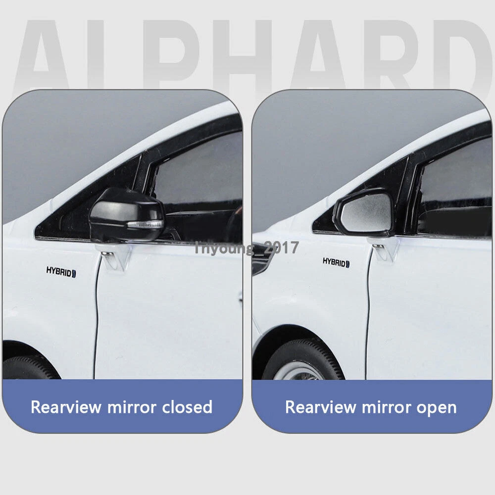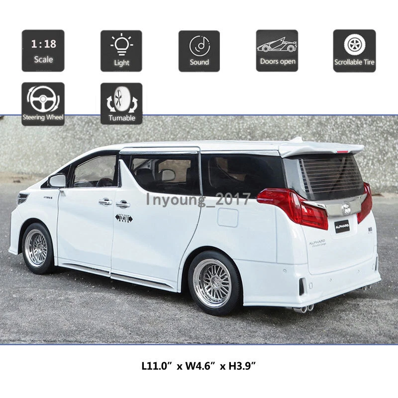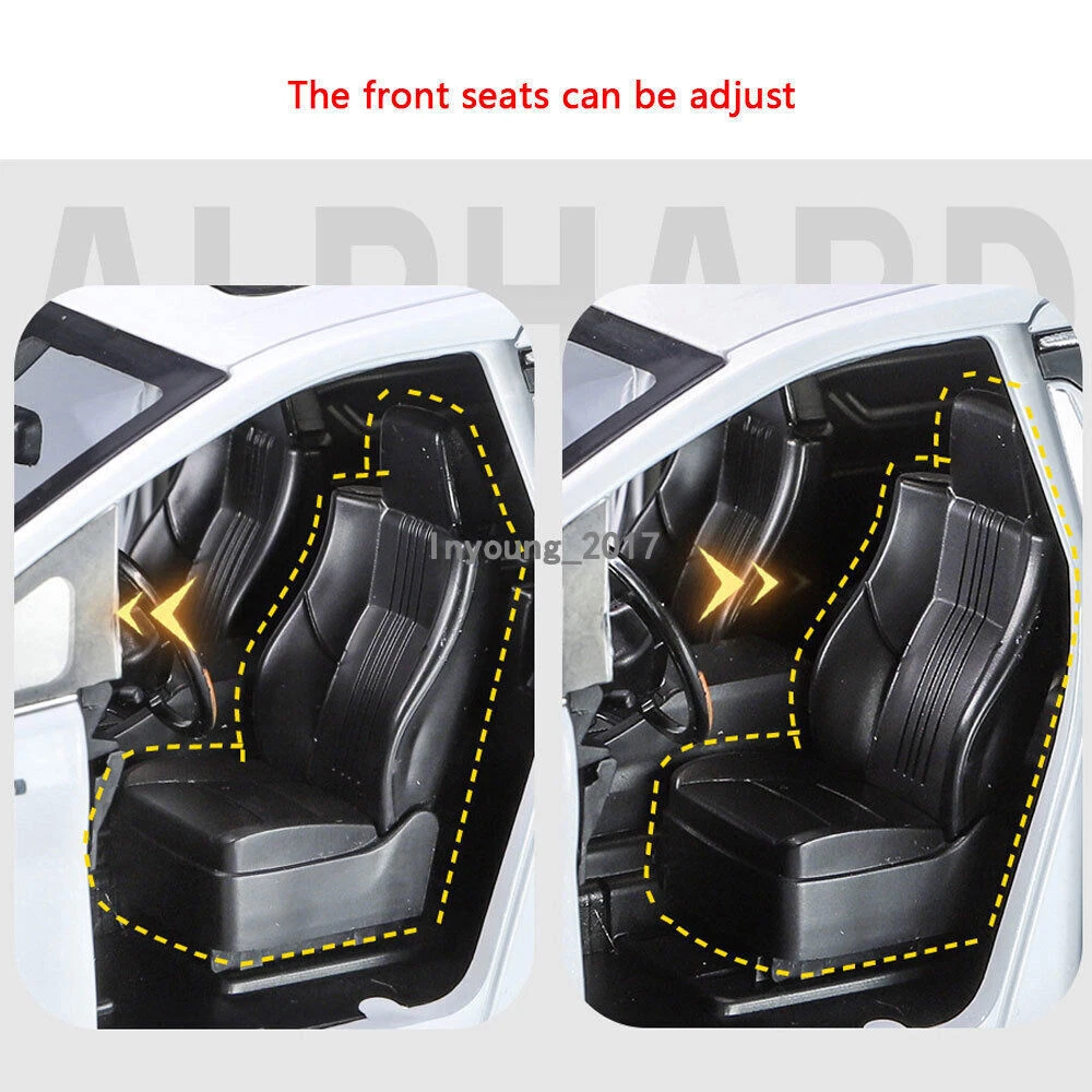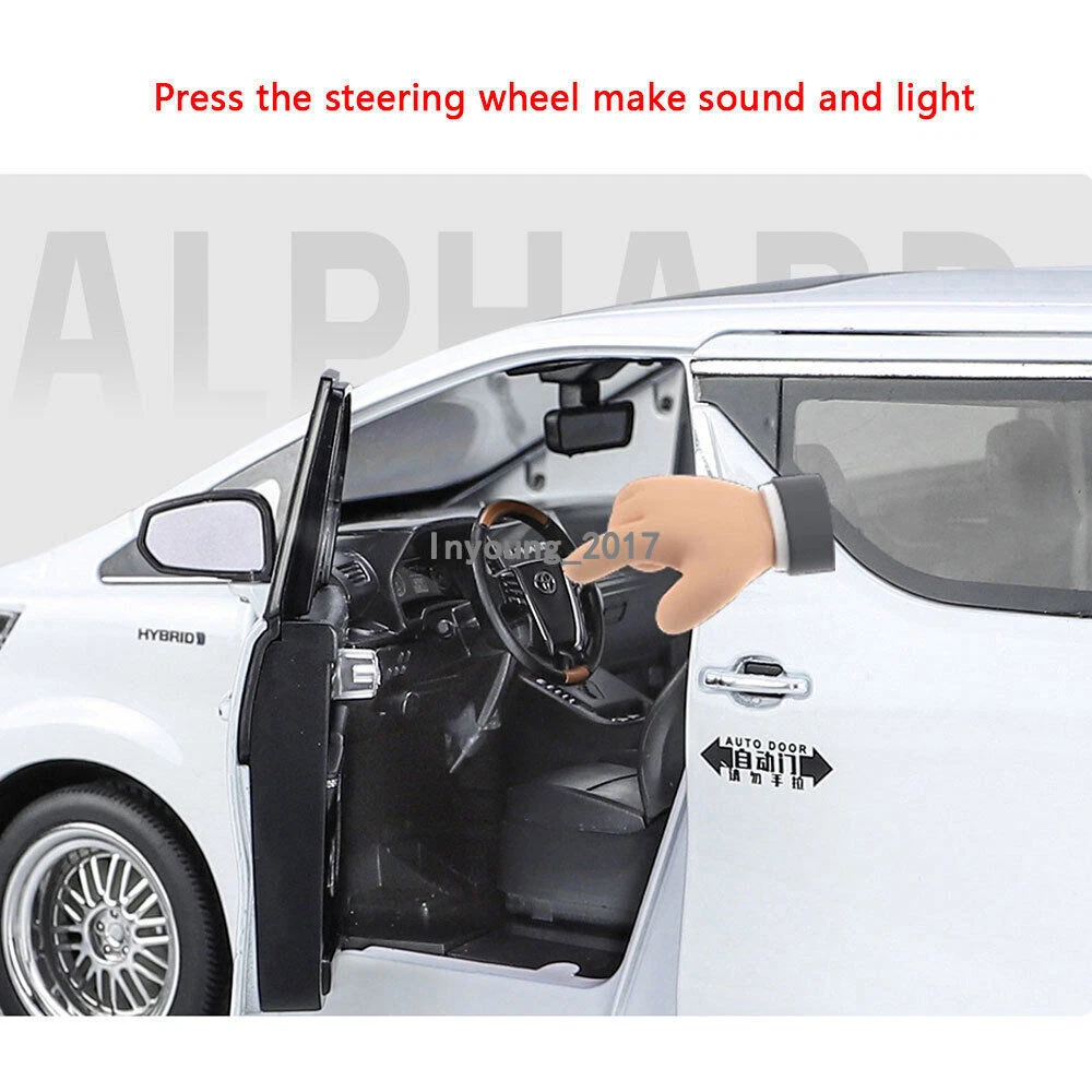 1:18 Alphard MPV Model Car Diecast Toy Cars Kids Gifts Boys Toys Men Collection Item Type Diecast & Toy Vehicles Scale 1:18 Material Diecast and ABS Color White and black, as picture shows Dimension About L11.0" x W4.6" x H3.9" (L28.0 x W11.8 x H10.0 cm) Vehicle Type MPV Function *No pull-back function, can be push forward and backward *Four doors, engine cover and trunk lid can be open *Press down the button beside the streering wheel, the passenger doors can be oepn and closed automatically, no manual *Press the car or press down the streering wheel, it will make sound and light Power 3 x 1.5V AAA button cell, power is just for light and sound Packing Packed in original color box, in excellent condition Tips *Great choice of gift for kids, especially for Birthday, Christmas and New Year Gift *Great item for collector, business gift, home decoration, office decoration, display Warning Don't put in mouth/Keep Away from Fire/Not for Children under 3 Years Notice Due to manual measurement, please allow a little error Package include 1 x 1:18 Scale Alphard Model Car ( Batteries Not Included ) Payment Delivery details Terms of sales Payment We accept paypal only. Delivery details We ship orders within 24 hours upon receipt of payment. Terms of sales We provide great products and service. If you have any problems with the order,please do contact us before leaving negative feedback and opening case on eBay.