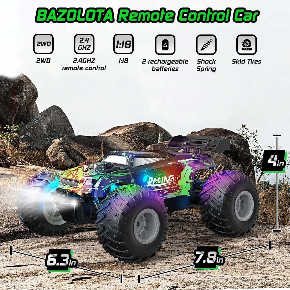 1:18 Fast RC Cars for Adults 40+ KM/H High Speed Remote Control Truck 4WD New 1:18 Cool Design: This fast RC car is equipped with high-quality brushed motors and the maximum speed can reach 20km/h. The RC car has flashing headlights and the body has colored lights. Very illuminated at night, making it easy to spot your own car among your friends. This remote control car only needs to control the steering wheel and the trigger, which is easy to use. Children can also easily and skillfully control it. No Interruption Play: This remote control monster truck is equipped with a 2.4GHZ no interruption remote control. When you race with other vehicles, your RC truck will not receive any interference. It is equipped with two rechargeable batteries, which can be used for a long time. This truck can be controlled from a long distance so that you can enjoy the fun of the race from a distance. Rugged & Anti-Collision Design: The shell is made of soft material, which has strong toughness and can be bent but not easily deformed. The chassis is mainly made of hard material, which has strong resistance to physical impact and is not easily damaged even in the event of a collision. The anti-collision bumper design on the front and rear can better protect the remote control truck. Applicable to Various Terrains: The four wheels of the off-road truck are equipped with spring shock absorbers, which can buffer the rebound force of the car when you drive it on various rough grounds. The large pattern rubber tires can provide proper friction when driving on tiles or other slippery ground, ensuring that the remote control car will not slip in your home floor surfaces. Toys for Kids and Pets: If you have a pet dog, you can control the remote control car to attract its attention, let it run, and play with you. If your child is relatively young, this can also attract his attention and cultivate children's hobbies. This RC car is a fun present that will bring joy to kids and pets. Shipping Your order will be carefully packed and shipped as soon as possible. We strive to process all orders quickly, and typically ship within [insert processing time, e.g., 1-2 business days]. You will receive a tracking number once your order has been dispatched, so you can monitor its progress. Please ensure that your shipping address is correct before completing your purchase, as we cannot make changes once the order has been processed. If you have any shipping-related questions, feel free to contact us, and we'll be happy to assist you. Thank you for shopping with us! Contact Us If you have any questions or concerns, we encourage you to reach out to us via eBay. Our team is dedicated to providing you with the best possible support, and we typically respond to all inquiries within 24 hours on weekdays. We understand the importance of your time, so we strive to address any queries as quickly and efficiently as possible. Your satisfaction is important to us, and we are here to assist you with any information or assistance you may need. Thank you for choosing to shop with us! Please visit our eBay store to check out other items for sale! Thank You for Shopping at Our Store. We Wish You a Great Day. Endless-Options-Store