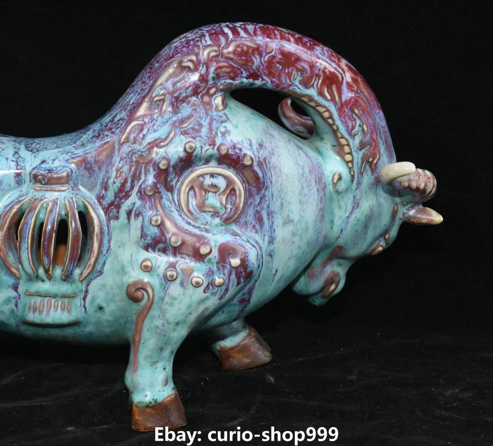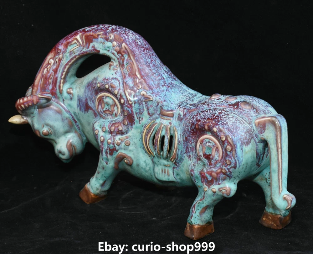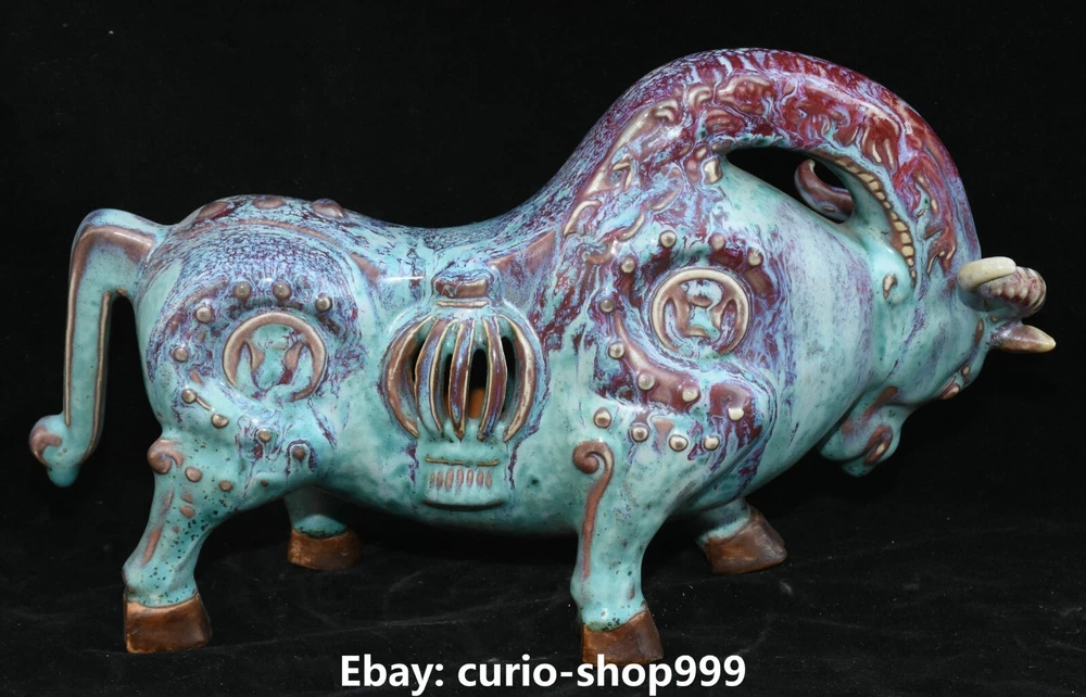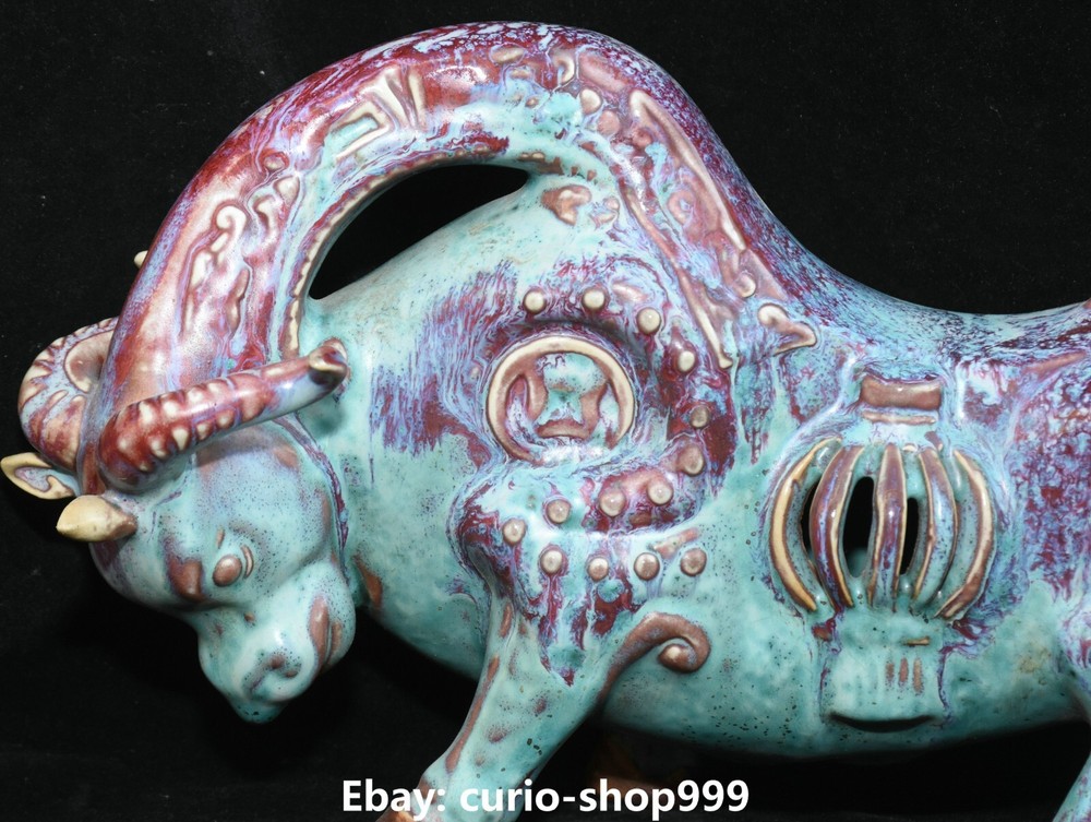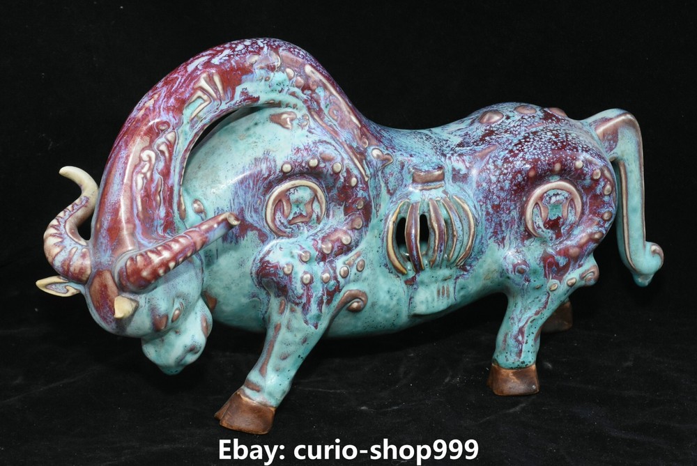 **** Welcome to our antique & Collectable Shop : Porcelain**** Description: Here is 11.8" Song Dynasty Jun Kiln Porcelain Fengshui Zodiac Cattle Bull Animal Statue.It is in good condition, and was created by skilled craftsmen in traditional style with fine handcrafts.This is a great piece of valuable collection, a valuable personal alter or a very good present. the handwork is very fine with incredible detailling. Don't miss out this chance to get it.Wish you good luck! Material : Jun Kiln Porcelain Size : Heigh t 7.1 Long 11.8 breadth 3.5 (Inch) Condition Perfect Condition. Perfect, with no scratc hes, flaws or repairs. Weight:1.7 KG----included the weight of packing materials Shipping cost to all over the world countries in Free Honored Customers: We are selling the collectibles products and crafts in Beijing ,China since 1993 and collected them all over the world all the time . In our shop the bronze sculpture, animal, vase, urn, flowerpot,Incense Burner.Table chair sets. Militaria goods. buddha statues, Bodhisattva Statues, Buddhist Ritual Items etc is our speciality .Many of the items we sell come from our own personal collection and have been in our family for a very long time .My great-grandfather was the first in this family to start collecting art & antiques when he still lived in San Xi and Tibet around 1922 ,some of the paintings he once collected can now be seen in museums around the globe.We won't make money from t he shipping cost, if you dislike the item when you receive it,we can refund all of your money to you within thirty days. Please confidence for bidding . We recommend the combine shipping and offer you an big price discount if you order more items together ! 2023.9.05 四 号