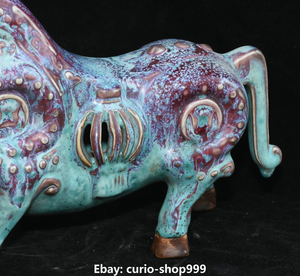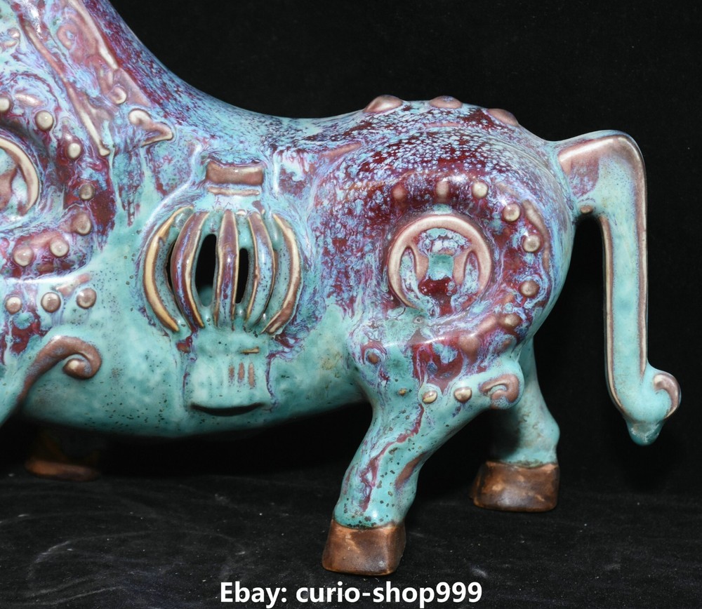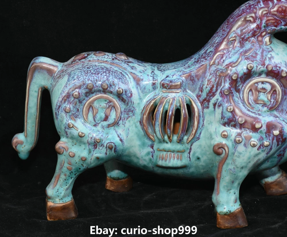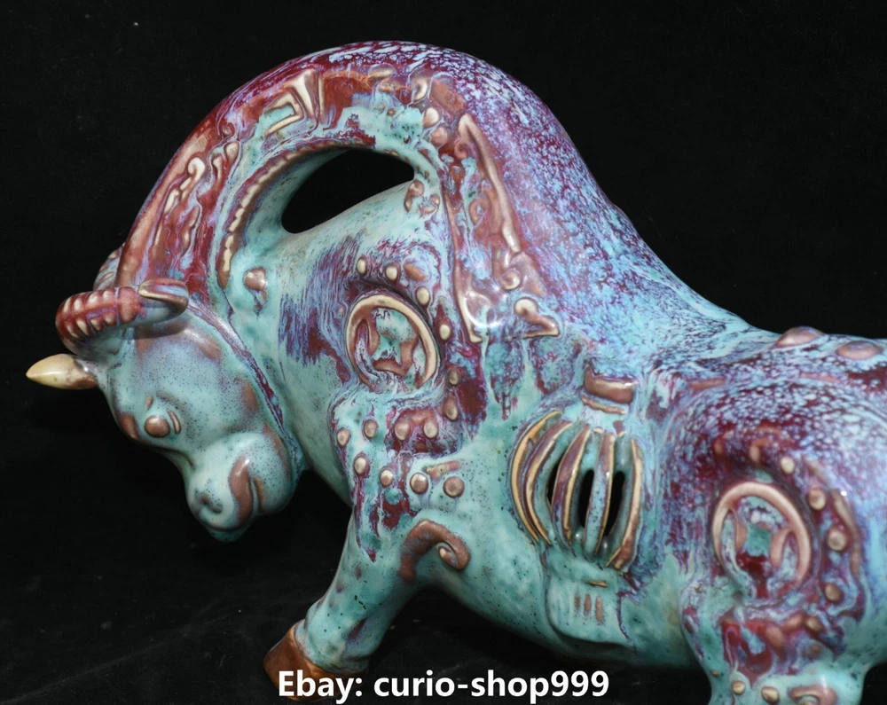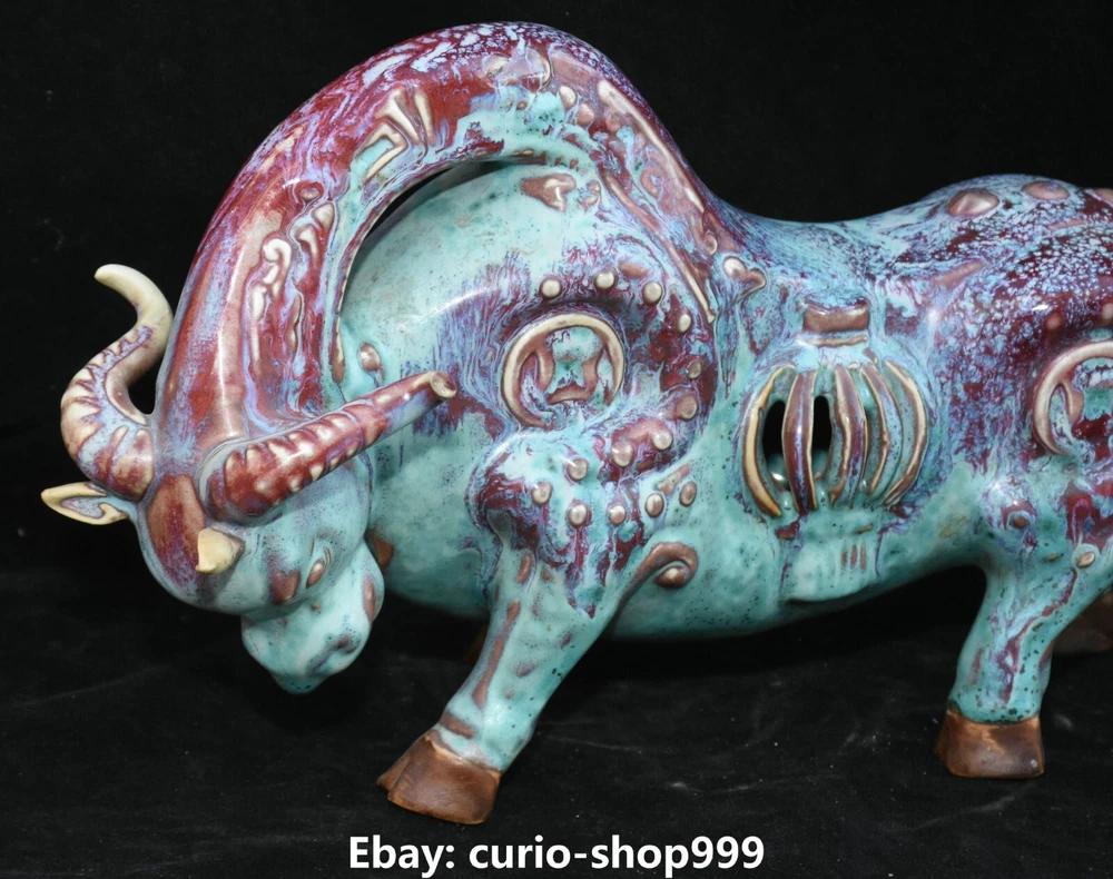 **** Welcome to our antique & Collectable Shop : Porcelain**** Description: Here is 11.8" Song Dynasty Jun Kiln Porcelain Fengshui Zodiac Cattle Bull Animal Statue.It is in good condition, and was created by skilled craftsmen in traditional style with fine handcrafts.This is a great piece of valuable collection, a valuable personal alter or a very good present. the handwork is very fine with incredible detailling. Don't miss out this chance to get it.Wish you good luck! Material : Jun Kiln Porcelain Size : Heigh t 7.1 Long 11.8 breadth 3.5 (Inch) Condition Perfect Condition. Perfect, with no scratc hes, flaws or repairs. Weight:1.7 KG----included the weight of packing materials Shipping cost to all over the world countries in Free Honored Customers: We are selling the collectibles products and crafts in Beijing ,China since 1993 and collected them all over the world all the time . In our shop the bronze sculpture, animal, vase, urn, flowerpot,Incense Burner.Table chair sets. Militaria goods. buddha statues, Bodhisattva Statues, Buddhist Ritual Items etc is our speciality .Many of the items we sell come from our own personal collection and have been in our family for a very long time .My great-grandfather was the first in this family to start collecting art & antiques when he still lived in San Xi and Tibet around 1922 ,some of the paintings he once collected can now be seen in museums around the globe.We won't make money from t he shipping cost, if you dislike the item when you receive it,we can refund all of your money to you within thirty days. Please confidence for bidding . We recommend the combine shipping and offer you an big price discount if you order more items together ! 2023.9.05 四 号