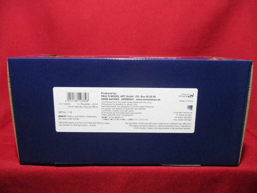 Hello friends, you are looking at a 1/18 scale Daniel Ricciardo Infiniti Red Bull Racing RB10 2014 Formula 1 Racing Car . Made by Minichamps. Unused, brand new in box. More diecast and resin vehicles in my eBay store . I am happy to combine shipments when possible. You can use the "Request Total" option or message me for an updated invoice when you are ready to pay for multiple items. Otherwise you can pay the full amount charged by eBay and all excess shipping costs will be refunded when your items are sent. All items are described accurately, packed safely and sent quickly. Customs fees or other taxes/charges are the buyer's responsibility. You will receive a notification when your order is shipped. You are buying from a trusted seller with nearly 20 years of experience. Please contact me with any questions or concerns, I respond to all messages. Your complete satisfaction is very important to me. Check my listings again soon, new items are added every week.