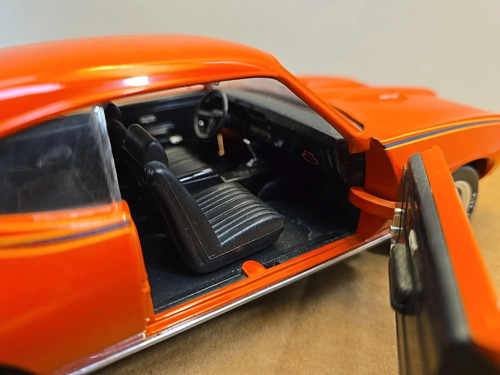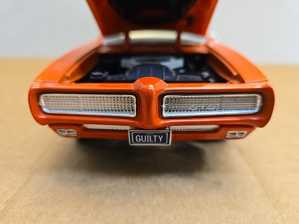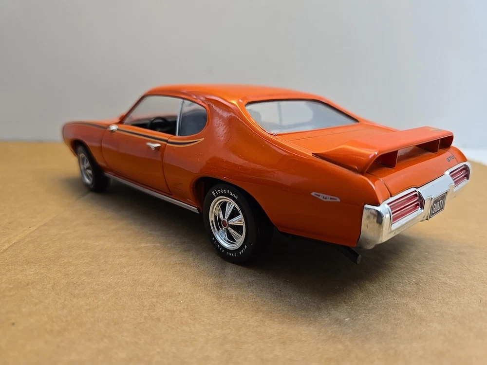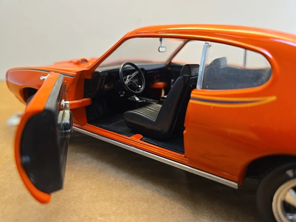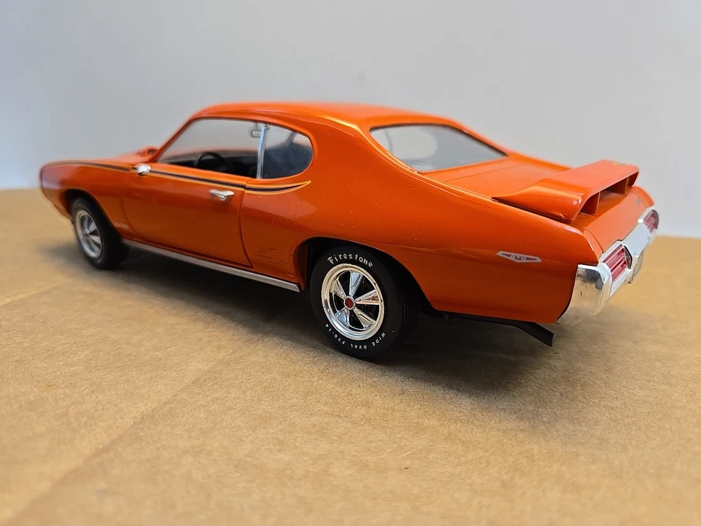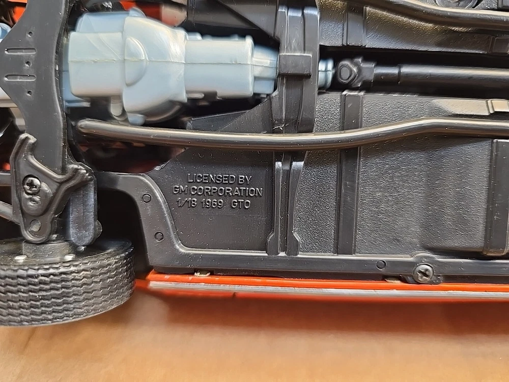 This 1:18 scale diecast model of a 1969 pontiac GTO. It comes with out its original box .No box .this in displayed condition. Littledusty but still very cool in your man cave.driverside door mirroris broken and missing.everthing eles looks ok. So this is being sold as a no box die cast car.comes just as you see it. Please ask any and all questions before purchasing