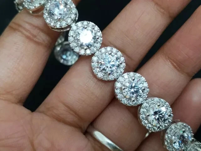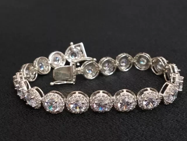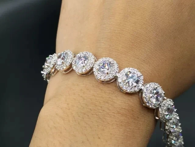 11CT Round Cut Lab Created Diamond Halo Womens Bracelet 14k White Gold Finish