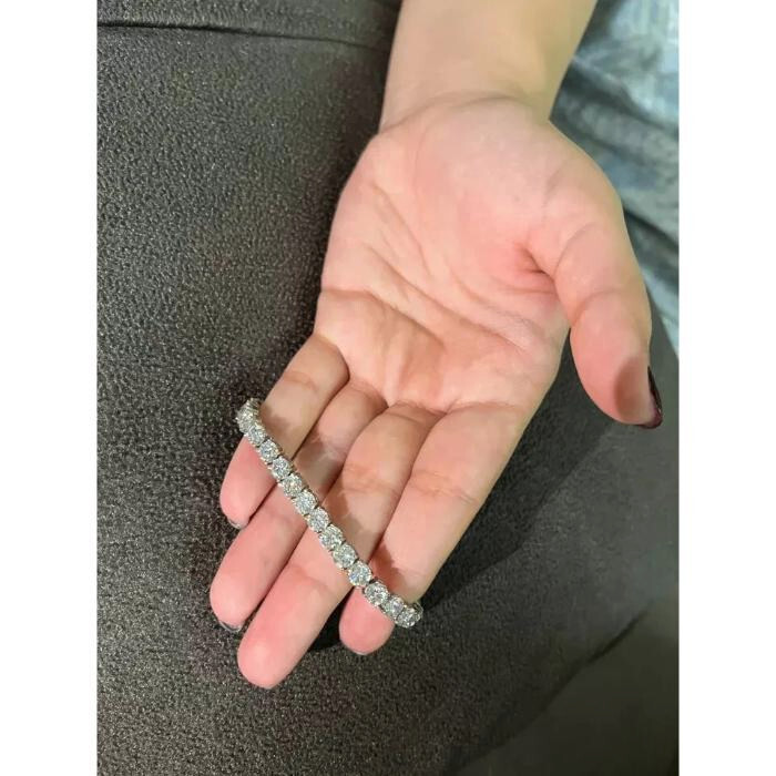 $ 136.4316Ct Oval Lab-Created Sapphire Diamond Women's Bracelet 14K White Gold Plated 7"