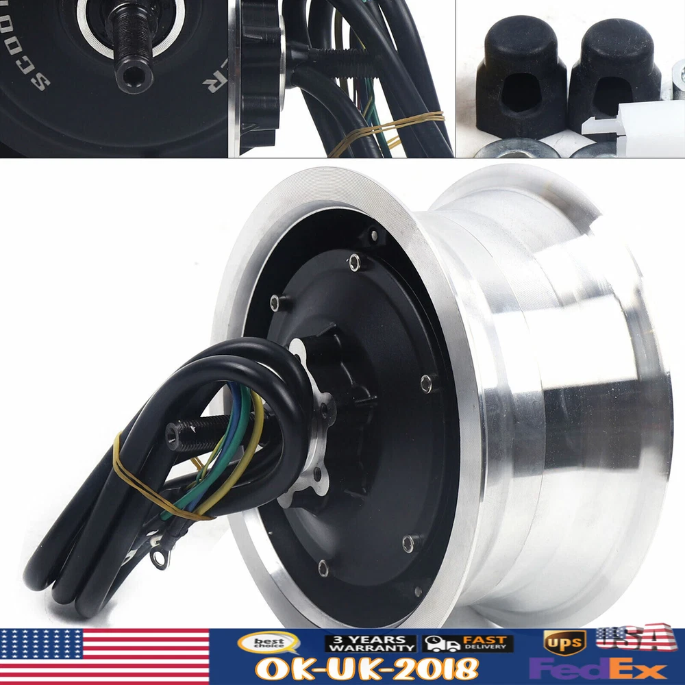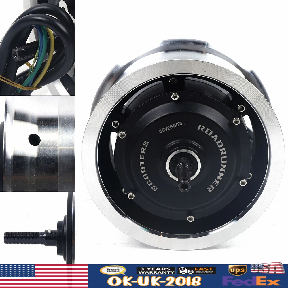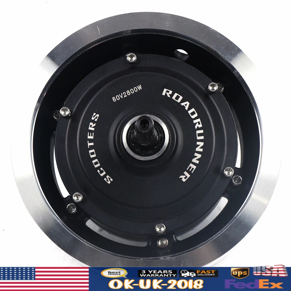 60V 2800W Brushless Motor Electric Motor for 11inch Electric Scooter Description: Specifications: Product Type: Electric Motor Power: 2800W Rated voltage: 60V Drive type: front drive and rear drive available Product weight: about 6.5kg Features: 1. Suitable for 11 inch electric scooter, 2800W power. 2. Pure copper motor core. Easy to use and install. 3. The in-wheel motor , which is strong and durable. Packing including: 1*Motor 11INCH Electric Scooter BRUSHLESS MOTOR WHEEL HUB For ELECTRIC SCOOTER 60V 2800W 60V 2800W Brushless Motor Description This brush motor with a pure copper coil ensures its good performance. Featuring an aluminum alloy housing, it is durable and weather-resistant. The speed of 1900 rpm makes your riding easier. This high-quality, practical motor will be the ideal choice for you! Key Features Robust and Durable : The high-quality aluminum alloy housing is robust, wear-resistant, impact-resistant and rust-proof, effectively protecting the internal components to extend its service life. High-speed Riding : With a maximum idling speed of 1900rpm, this 2800W motor allows for quick and efficient runs for fully enjoying riding. Strong Bearing Capacity : With its sturdy housing and powerful torque, it can load 330lbs to meet your daily needs. Low Noise: With a pure copper coil and precision bearings, it releases less noise during operation, giving a more comfortable riding environment for you. Easy to Install : Its easily identifiable wiring harness and complete range of mounting accessories allow you to quickly complete the installation and DIY your own electric scooter at home. Excellent Waterproofing : Featuring excellent water resistance, it allows you to ride freely even in the rain without worrying about water damage to the motor. Protective Shipping: In order to prevent it from being damaged and bumped during transportation, we fill the package with anti-collision protection foam to protect your products to the maximum extent possible. Customer Service : We aim to provide quality products and services. If you have any problems, please feel free to contact us. We will reply and solve the problem for you as soon as possible. Details Pure Copper Coils: Pure copper coils with low resistance and high conductivity generate very little heat during use and achieve maximum efficiency of up to 83% for a smoother, more efficient ride. Rubber Sleeve and Wiring Box: The wiring box guarantees waterproof, safe, and organized wiring. The rubber sleeve is used to protect the flange nut. Application It is suitable for 11in DIY electric scooters, electric bikes, folding bikes and light electric tricycles, etc. Specifications Color: Silver, Black Material: Aluminum Alloy Type: Brushless Pure Copper Motor Drive Type: Front Drive and Rear Drive Available Winding: 20*3 Voltage: 60V Max. Input Current: 45A Idling Speed: 1900rpm Max. Efficiency: 83% Max. Input Power: 2800W Max. Output Power: 2200W Rated Power: 600W(Loading 75kg/165lbs ) Max. Torque: 45nm Total Axle Length: 210mm/8.26in Frame Open Gear Length: 146mm/5.74in Wheel Diameter: 181mm/7.12in Magnet Size (L*Th*W): 60*3*11.2mm/2.36*0.11*0.44in Core Size (OD*H): 105*60mm/4.13*2.36in Copper Wire Diameter: 0.51mm/0.02in Packing Size: 23.75*23.75*23.75cm/9.35*9.35*9.35in Net Weight: 6.5kg/14.3lbs Loading Capacity: 150kg/330lbs Package Included 1* Motor 1* Wiring Box 5* Wiring Gaskets 2* Wiring Screws 2* Flange Nuts 1* Rubber Sleeve Notes Please allow the slight color difference caused by the shooting light and 1-3cm error due to manual measurement, and make sure you do not mind before you order. Payment Delivery details Terms of sales About us Contact us Payment We accept ebay payment 。 Fees such as import duties, taxes are not included in the item price or shipping costs. These charges are the buyer's responsibility. Delivery details Shipping: 2-9 working days to: USA Terms of sales We maintain high standards of excellence and strive for hundred percent customer satisfaction. Feedback is very important to us. We hope that you contact us immediately before you give neutral or negative feedback, so that we can address your concerns. It is impossible to address issues if we do not know about them! About us Your satis faction is our ultimate goal. We work hard to earn your trust and future business. Our certified technicians have tested each item before shipping. The unit comes with 1 year limited warranty on all manufacturing defects. a) If you receive a defective item, you may return it or ask for a discount. Please contact us within 14 days after you receive the package. b) What you returned must be intact and in its original packaging as re? u. Customer is responsible for shipping costs of the returned item. c) We will cover the cost of shipping back t with the shipping rate indicated in the registration page. We will send you a new unit or refund the full payment you paid. Thank you. Contact us Business Hour Business Hour: Monday To Friday: 8:30 AM to 5:00 PM (Beijing China time) Due to time zones, our reply to your questions may not be immediately. But within above working time, we will reply your email within 24 hours. If it's non-workdays, please kindly be patient and wait till Monday. Please contact us with ebay message. Please feel free to contact us if you have any questions. Monday To Friday: 8:30 AM to 5:00 PM (Beijing China time) Due to time zones, our reply to your questions may not be immediately. But within above working time, we will reply your email within 24 hours. If it's non-workdays, please kindly be patient and wait till Monday. Please contact us with ebay message. Please feel free to contact us if you have any questions. ~Feature~ AAAAA+ SELLER!!! Features Pure copper motor core Shipping notice Can not ship to Puerto Rico,Alaska/Hawaii Brand Unbranded MPN Does Not Apply Type Motor Suitable For 11 inch electric scooter, 2800W power Product Type Electric Motor Power 2800W Rated voltage 60V Drive type front drive an