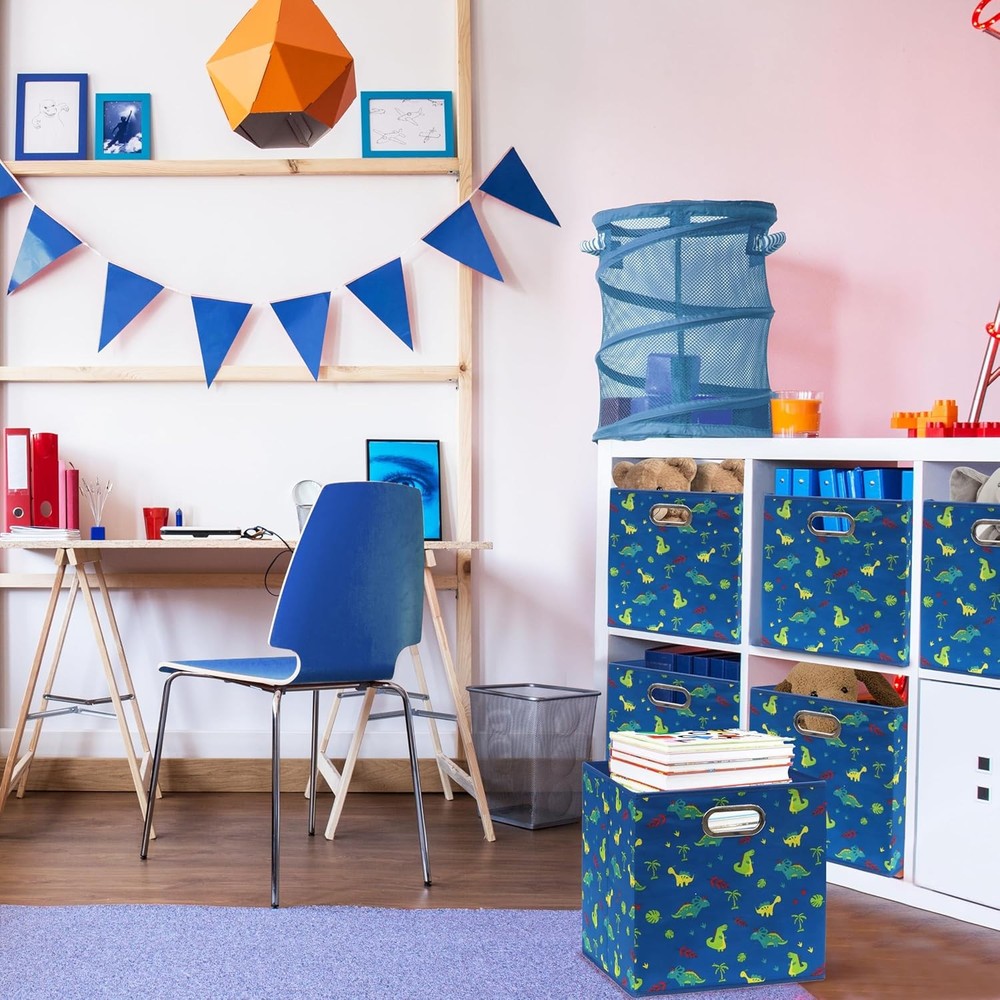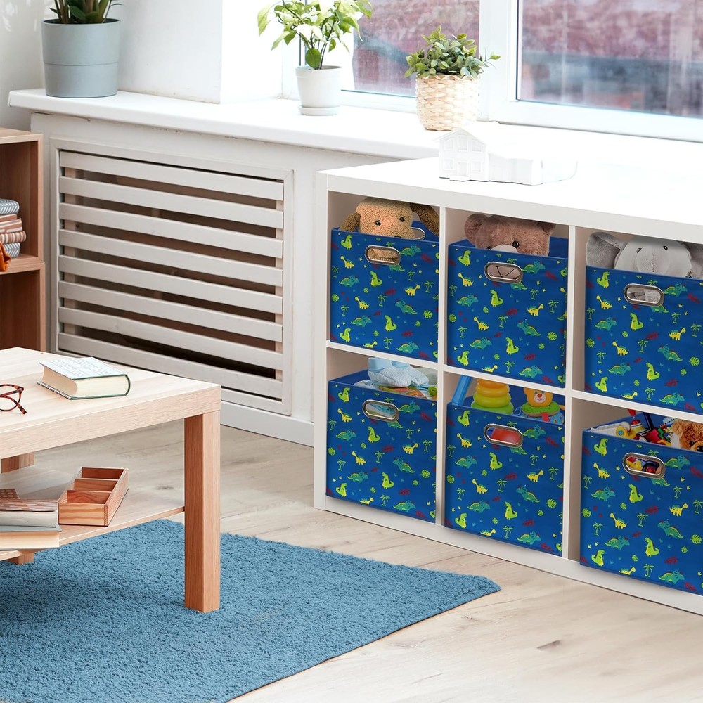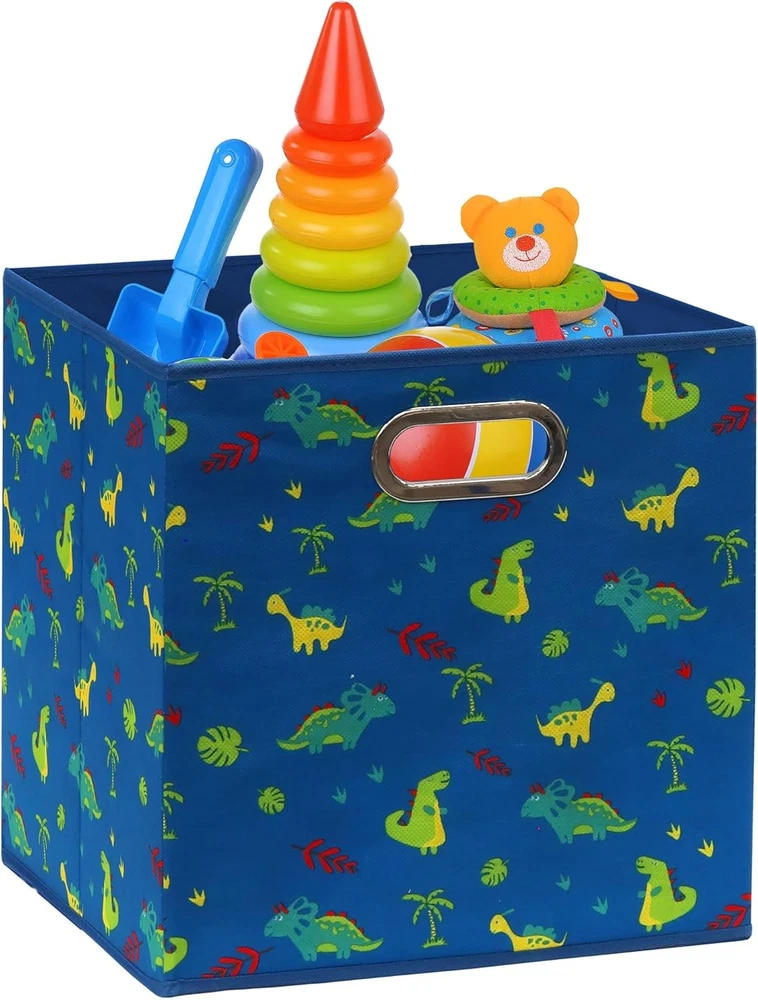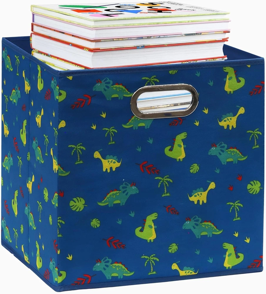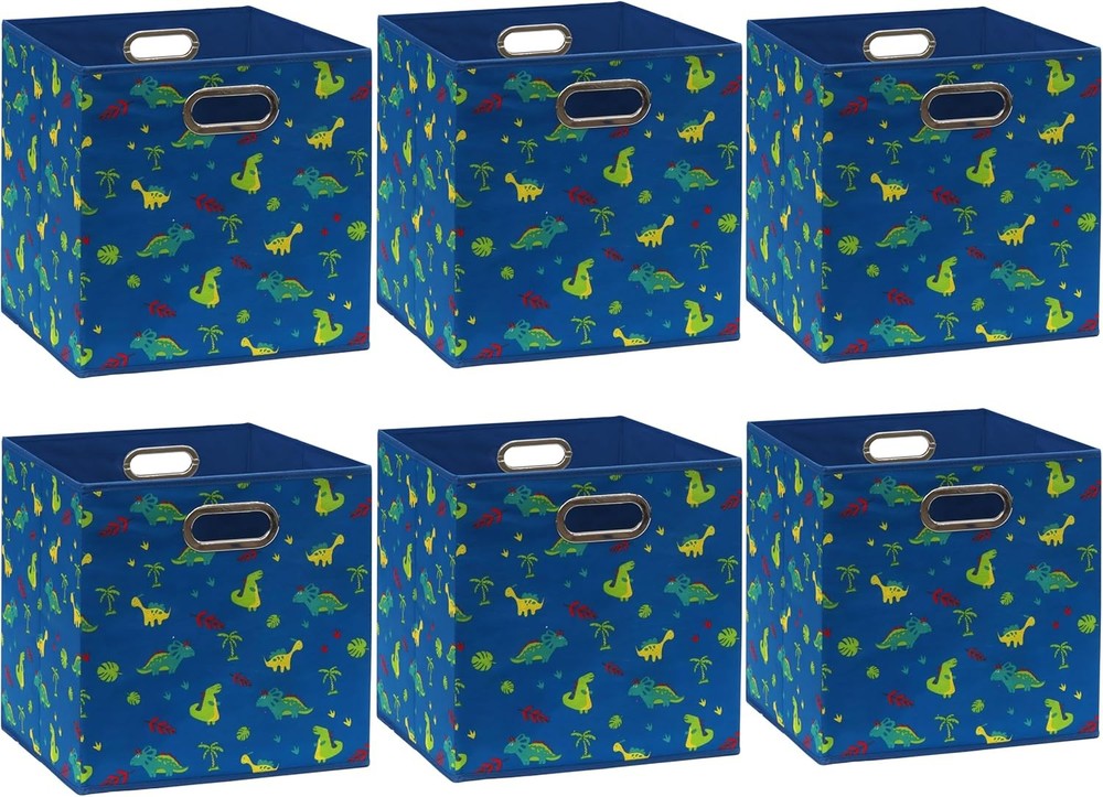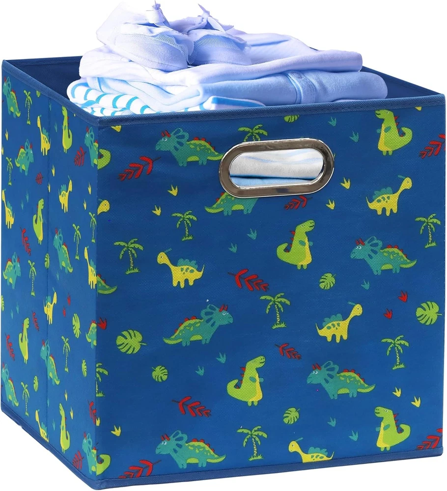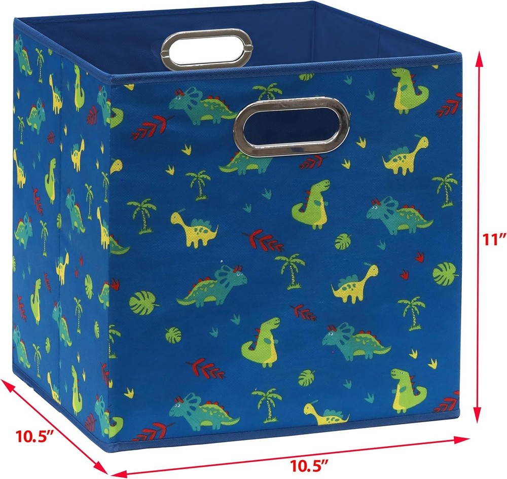 Space-Saving Design: Collapsible fabric bins with a stylish print; foldable for compact storage when not in use Durable Structure: Reinforced with 5 heavy-duty cardboards, including the bottom, for sturdy support on all sides Lightweight & Sturdy: Designed for easy organization; perfect for storing clothes, toys, books, and household items Metal Grommet Handle: 2-side grommet handles for a sleek look and easy access; seamlessly fits into most cube storage organizers Perfect Size: Measures 10.5" L x 10.5" W x 11" H; ideal for closets, shelves, and cube storage units
