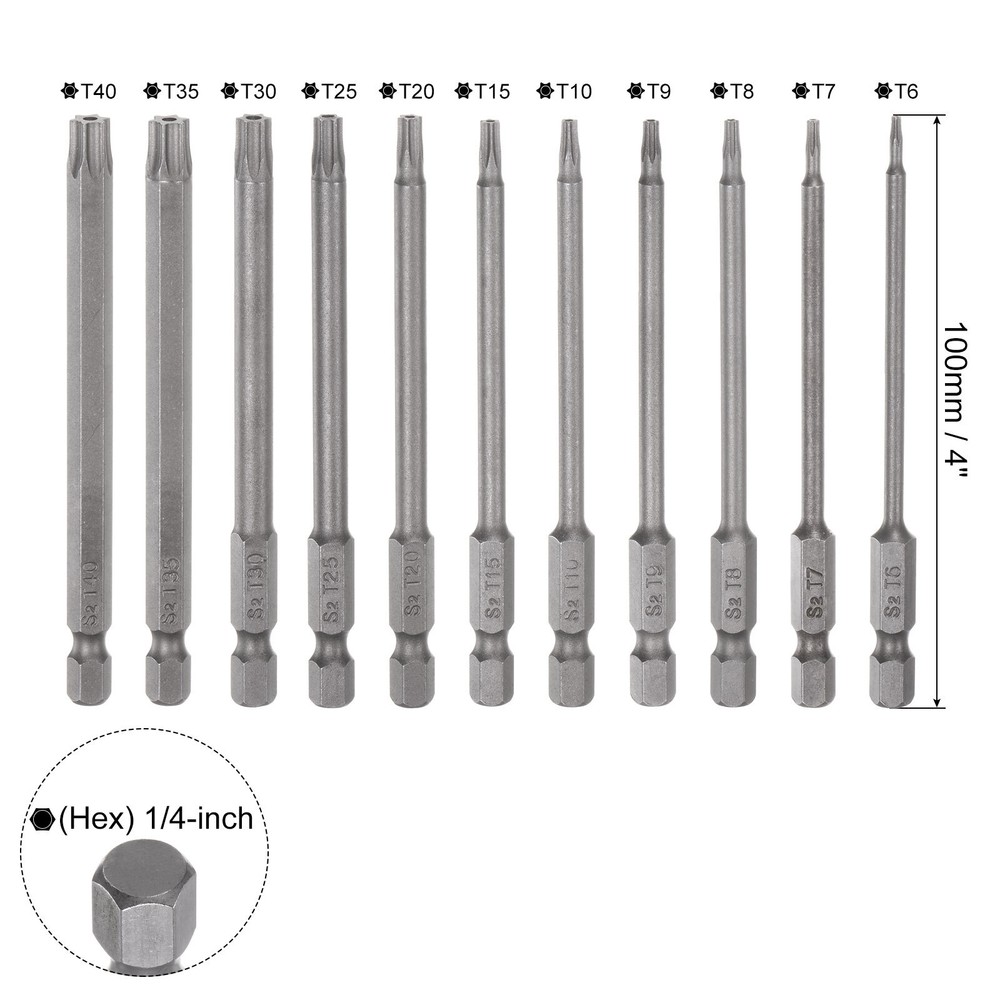 Document The hole in the center of each bit makes it tamper-resistant and is designed to prevent hex bits from snapping onto most standard sockets, screwdrivers, drill/driver sets, and power tool accessories.Torx screwdriver bits are made of S2 alloy steel, with high hardness, the hardness can reach 58HRC, the surface is sandblasted, and durable, and the size is clearly engraved on the handle for easy identification.The Torx head screwdriver bit has a wide range of applications and can be used for supporting electric screwdrivers, manual screwdrivers, electric drills, pneumatic drills, group general-purpose tools, and other standard bit holders.Exquisite workmanship, each edge can accurately lock the screw without damaging the screw and the screwdriver head. Suitable for replacing lost, bent or damaged Torx screwdriver bits.Magnetic torx head securely holds screws before installation and after removal for increased efficiency. It can easily absorb the screw when using it, making it easier to use the screw.Specifications:Material: S2 alloy steelShank Size: (Hex) 1/4-inchBit Type: T6, T7, T8, T9, T10, T15, T20, T25, T30, T35, T40Total Length: 100mm / 4 inchSurface Treatment: SandblastingPackage Content:11 x Torx Screwdriver Bits 11PCS T6-T40 Torx Security Screwdriver Bit Set S2 Steel Tamper Proof Bit 4" Long The hole in the center of each bit makes it tamper-resistant and is designed to prevent hex bits from snapping onto most standard sockets, screwdrivers, drill/driver sets, and power tool accessories. Torx screwdriver bits are made of S2 alloy steel, with high hardness, the hardness can reach 58HRC, the surface is sandblasted, and durable, and the size is clearly engraved on the handle for easy identification. The Torx head screwdriver bit has a wide range of applications and can be used for supporting electric screwdrivers, manual screwdrivers, electric drills, pneumatic drills, group general-purpose tools, and other standard bit holders. Exquisite workmanship, each edge can accurately lock the screw without damaging the screw and the screwdriver head. Suitable for replacing lost, bent or damaged Torx screwdriver bits. Magnetic torx head securely holds screws before installation and after removal for increased efficiency. It can easily absorb the screw when using it, making it easier to use the screw. Specifications: Material: S2 alloy steel Shank Size: (Hex) 1/4-inch Bit Type: T6, T7, T8, T9, T10, T15, T20, T25, T30, T35, T40 Total Length: 100mm / 4 inch Surface Treatment: Sandblasting Package Content: 11 x Torx Screwdriver Bits Hot Item Payment 1.We accept eBay payment . 2.Payment must be received within 7 business days of auction closing. Shipping 1.We ship to your eBay or Paypal address. Please make sure your eBay and Paypal address is correct before you pay. 2.Items will be shipped within 1-3 business day when we received payment. 3.Delivery time depends on destination and other factors. Description Policy 11PCS T6-T40 Torx Security Screwdriver Bit Set S2 Steel Tamper Proof Bit 4" Long The hole in the center of each bit makes it tamper-resistant and is designed to prevent hex bits from snapping onto most standard sockets, screwdrivers, drill/driver sets, and power tool accessories. Torx screwdriver bits are made of S2 alloy steel, with high hardness, the hardness can reach 58HRC, the surface is sandblasted, and durable, and the size is clearly engraved on the handle for easy identification. The Torx head screwdriver bit has a wide range of applications and can be used for supporting electric screwdrivers, manual screwdrivers, electric drills, pneumatic drills, group general-purpose tools, and other standard bit holders. Exquisite workmanship, each edge can accurately lock the screw without damaging the screw and the screwdriver head. Suitable for replacing lost, bent or damaged Torx screwdriver bits. Magnetic torx head securely holds screws before installation and after removal for increased efficiency. It can easily absorb the screw when using it, making it easier to use the screw. Specifications: Material: S2 alloy steel Shank Size: (Hex) 1/4-inch Bit Type: T6, T7, T8, T9, T10, T15, T20, T25, T30, T35, T40 Total Length: 100mm / 4 inch Surface Treatment: Sandblasting Package Content: 11 x Torx Screwdriver Bits Hot Item Payment 1.We accept eBay payment . 2.Payment must be received within 7 business days of auction closing. Shipping 1.We ship to your eBay or Paypal address. Please make sure your eBay and Paypal address is correct before you pay. 2.Items will be shipped within 1-3 business day when we received payment. 3.Delivery time depends on destination and other factors.