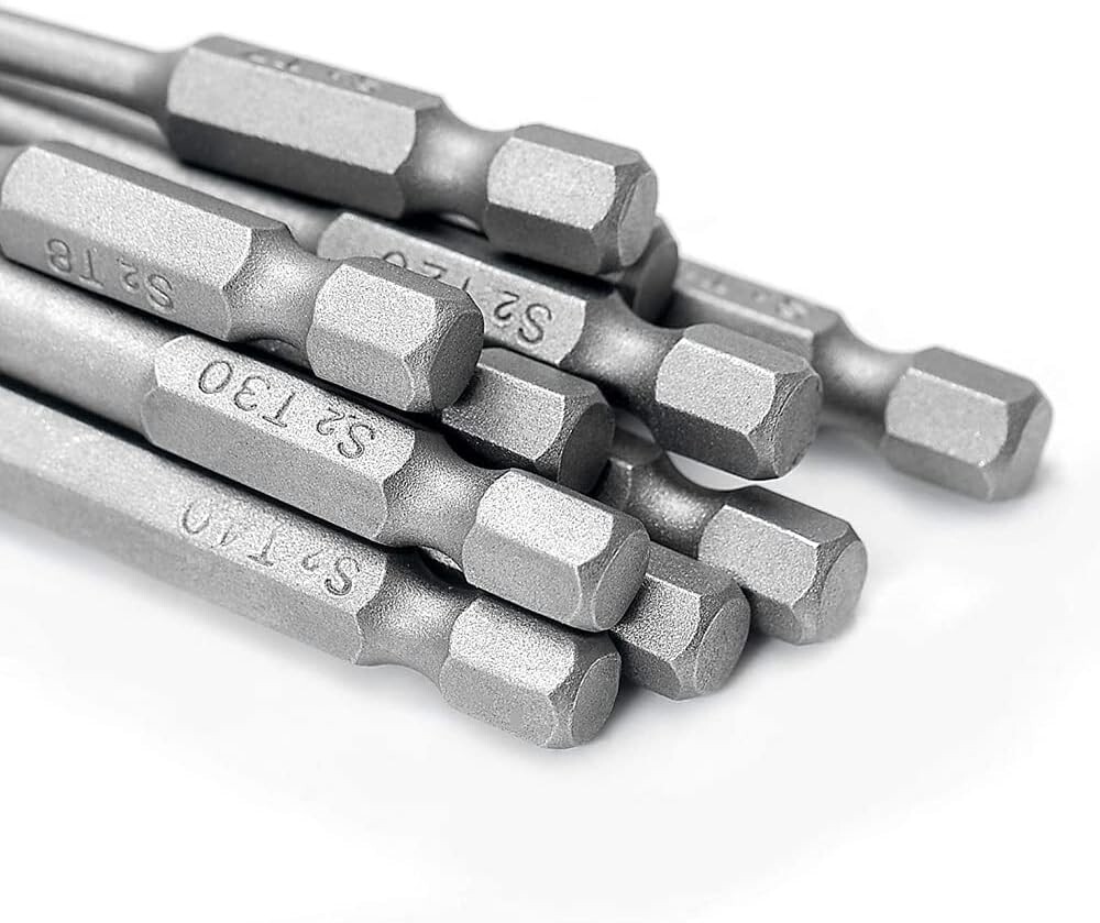 Fixinus 11 Piece Torx Head Screwdriver Bit Set, Magnetic 1/4 Inch Hex Shank S2 Steel 3 Inch Long Drill Bits, Security Torx Bits T6-T40, 75mm Length About this item 【11 Pieces Torx Bit Set】T6, T7, T8, T9, T10, T15, T20, T25, T27, T30, T40. Length: About 75 mm / 3 in 【Premium Quality】Magnetic tips are S2 Alloy Steel -- Good toughness and Will Last For Years. Surface sandblasting treatment improves the fatigue resistance of the product. 【Strong Magnetic】Can suck the screws easily when used it. 【Quick Change】1/4 inch hex shank fits into tools more easily and securely.
