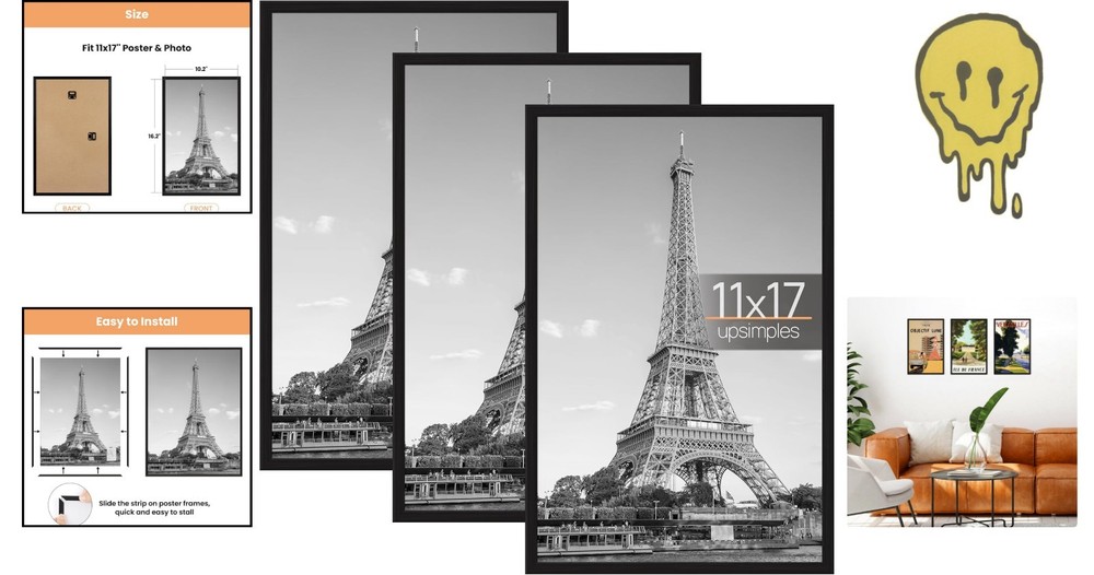 11X17 Picture Frame Black 3 Pack, 11 X 17 Frame for Horizontal or Vertical Wall ‹ › ‹ › ‹ › ‹ › ‹ › ‹ › ‹ › ‹ › ‹ › Upgrade Your Decor with Our Stylish 11x17 Poster Frame Designed with a contemporary touch, this 11x17 poster frame is perfect for enhancing any space—be it your home, office, photo studio, art gallery, or school exhibition hall. It’s ideal for showcasing Video Game or Movie posters to give your environment a fresh, personalized look. Upgraded Material Made from lightweight, upgraded plastic, this frame is both scratch-proof and durable. The thicker plastic cover includes a protective film to prevent scratches during handling—simply tear off the film before use for a clear, pristine display. Easy Installation Enjoy hassle-free setup with frame strips that slide together effortlessly, making even large frames lightweight and manageable. The sturdy back comes with 2 hangers, allowing you to hang the frame vertically or horizontally with ease. Perfect Gift Idea This versatile frame suits all types of photos, including art prints, children’s artwork, Video Game, and Movie posters. It makes an ideal gift for family or friends on special occasions such as anniversaries, weddings, birthdays, Mother’s Day, Father’s Day, Thanksgiving, and Christmas. Secure Packaging & Safe Shipping Each frame is individually sealed in plastic with corner guards and overall packaging to prevent damage during transit. In case of any minor damage, simply slide the strips back into place to restore the frame’s integrity. Upgrade your space with this stylish, durable, and easy-to-install poster frame. Order today and transform your wall decor effortlessly! Shipping Free & Fast Shipping - We offer free shipping to most of the USA with a normal delivery time of 3-7 days. However, due to the current situation, additional delivery time (up to 3 weeks) may be required for some items. Alternative Carriers - We may use alternative carriers (e.g. USPS, FedEx, UPS, etc.) to ensure your package arrives safely and on time. Due to the use of multiple carriers, we are unable to provide a tracking number automatically. Handling Time - Orders are processed and shipped within 1-2 business days of receiving cleared payment. Shipping Restrictions - Shipping to Alaska, Hawaii, Puerto Rico, Guam, and other US territories may incur shipping charges or delivery restrictions. Please contact us before ordering, or your order can be refunded/cancelled. State Restrictions - There may be restrictions based on your state of purchase. For example, certain items may not be shipped to California due to state regulations. Contact for Tracking Updates - If you require tracking updates or have any concerns about the delivery of your order, please feel free to contact us, and we will be happy to assist you. Return 30-Day Hassle-Free Returns - We want you to be completely satisfied with your purchase. If you are not, you can return the item within 30 days of receiving it for a full refund or exchange. Easy Return Process - To start a return, simply contact us and we will provide you with a prepaid return shipping label and detailed instructions. Restocking Fee - There are no restocking fees for returns. However, the buyer is responsible for return shipping costs if the return is not due to a seller's error. Refund Processing Time - Refunds will be processed within 5 business days of receiving the returned item in its condition. Payment We accept all major credit cards, PayPal, and Apple Pay for your convenience. Your payment information is secure and encrypted to ensure a safe and seamless transaction. Please complete your payment within 3 days of purchase to avoid any delays in shipping. Feedback Your feedback is extremely important to us. We strive to provide the best products and customer service possible. If you are satisfied with your purchase, please take a moment to leave us a positive review. If you have any concerns or issues with your order, please contact us before leaving negative feedback. We are committed to resolving any problems and ensuring your satisfaction. Contact Us If you have any questions or concerns, please feel free to out to our customer support team. You can contact us through the eBay messaging system. We are available Monday to Friday, 9:00 am to 5:00 pm EST, and we will do our best to respond to your inquiry within 24 hours. Buy it now and enjoy a pleasant shopping experience! UPC: 313033841862 Item Width (Interior): 11 in Item Weight: 2.38 pounds Unit Quantity: 3 Frame Type: Poster Frame Unit Count: 3 Item model number: FUP0301060 Product Dimensions: 11"L x 17"W Mounting Type: Wall Mount Back Material Type: Wood Target Audience: Unisex Adult Manufacturer: upsimples Cover Material: Plastic Frame Material: Plastic Number of Items: 3 Batteries required: No Special Feature: Lightweight Type: Poster Frame Suitable for Photo Size: 11 x 17 in Material: Plastic Photo Capacity: 3 Color: Black Theme: Family Occasion: Anniversary Shape: Rectangular Style: Modern Size: 11x17 Mounting: Wall Mounted Glass Type: No Glass Finish: Polished Box Frame Depth: 0.99 in Photo Insertion Type: Slide-In Orientation: Vertical Era: 21st Century (2000-Now) Power Source: Manual Wind-Up