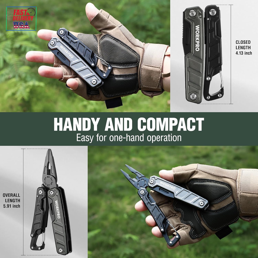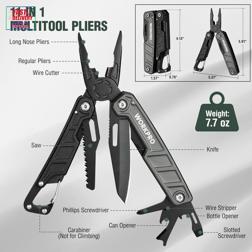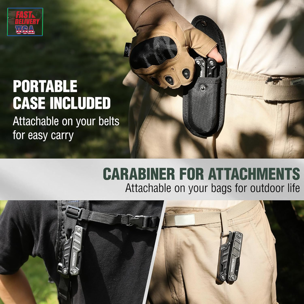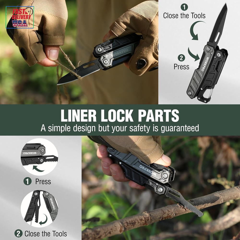 Store New Arrivals Add to Favorite View Feedback Contact Multitool-11 in 1 Multitool Pliers with Pocket Clip and Sheath-Edc Multi Tool Knives with Safety Lock-Camping Tools Pocket Knife with Screwdriver Saw Blade Wire Cutter and Bottle Opener Description Item model number W000326A Part Number 1 Item dimensions L x W x H 2.68 x 1.5 x 5.31 inches Color Green Included Components Plier Material Metal Batteries Required? No Item Weight 220 Grams Batteries Included? No Number of Pieces 1 Product Dimensions 2.68 x 1.5 x 5.31 inches All-in-One Multitool Pliers: We've crafted this multipurpose tool to include long and regular pliers, a wire cutter, a saw, a knife, a Phillips screwdriver, a slotted screwdriver, a wire stripper, a bottle opener, a can opener, and a carabiner (not suitable for climbing). It's the perfect solution for all your daily needs Safety Locking Mechanism: Our pocket tool features safety liner locking parts that ensure the secure use of tool components, such as the knife and saw blade, which could potentially be hazardous if not fully locked. You can have complete confidence in this versatile gadget, thanks to its robust safety features Portable Sheath and Pocket Clip: When going outside for work, camping, or hiking, simply grab the pocket multitool and place it in the nylon sheath, which can be attached to your belt or bag. Alternatively, you can easily clip the multitool to your pocket Ideal Gift for Men: Surprise your husband, boyfriend, or dad with this multipurpose gear that allows for single-hand operation. It's an ideal birthday gift for both men and women and makes for a fantastic addition to Christmas stocking stuffers Versatile Pliers: This stainless steel multi-tool is adaptable to various aspects of your life! Whether you're camping, hiking, hunting, or engaging in outdoor activities, it's indispensable. Additionally, it serves as an excellent survival tool for your outdoor adventures and a valuable addition to your everyday carry (EDC) for home improvement tasks Product Description 1 OUTDOOR MULTI-TOOLS 2 PORTABLE SHEATH 3 PREMIUM QUALITY 4 WIDE USE TOOLS ABOUT US We offer the best prices around on high quality products. Our E-store includes media such as books, movies, music and games while offering electronics, toys, sporting apparel, clothing, tools, general home, garden items and more. SHIPPING We are always working hard to ensure your package arrives as soon as possible. Please understand that some factors like weather, high postal traffic, and the performance of shipping companies are outside of our control. We offer free shipping to the lower 48 states and ship within 2 business days of payment, usually sooner. We do not accept P.O. Boxes. Please provide a physical address. For shipping outside of the continental USA, we only use eBay's Global Shipping Program.The item is shipped to KY and then sent to the rest of the world. International customers are responsible for all duties and taxes. Continue to check out in order to calculate costs for shipping the item to your country. Messages regarding eBay's Global Shipping Program MUST be directed at eBay EXCLUSIVELY. RETURNS We offer a 30-Day Return Policy on items which you are not completely satisfied with. You have the option for a full-refund or an exchange of the item. No returns are available on items shipped outside of the USA. PAYMENT We accept PayPal. CONTACT US This page content is yet to come Please ad us to your favorite seller and visit again later Thank You CUSTOMER SATISFACTION We try our very best to make sure every customer is completely satisfied. If there's a problem, message us! We're happy to help. WE ACCEPT Copyright © 2021 AutoDS. | All Rights Reserved