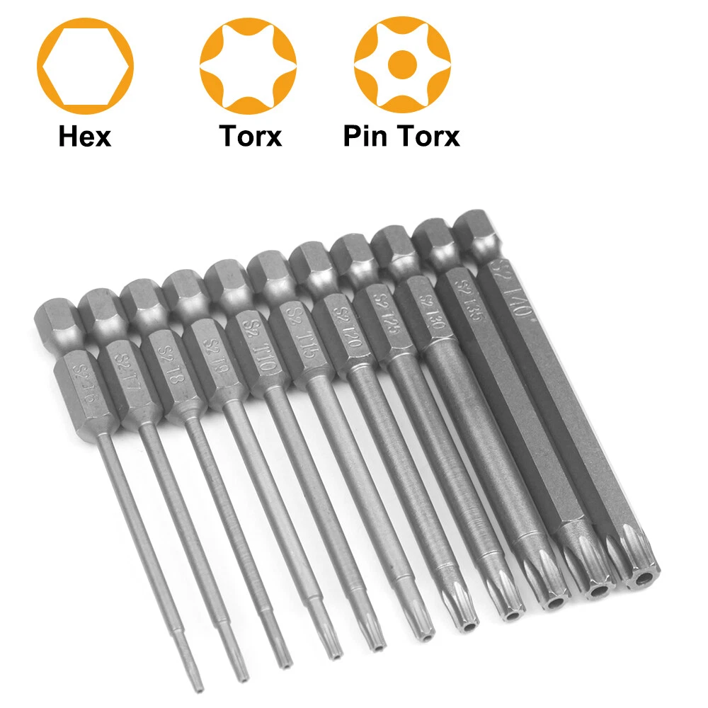 🔧 11-Piece Magnetic Torx Screwdriver Bits Set - S2 Steel | 1/4" Hex Shank | T7-T40 🔧 Highlights: ✅ Premium S2 Alloy Steel - Engineered for exceptional durability and high hardness to resist wear and stripping. ✅ Strong Magnetism - Securely grips screws for effortless installation/removal, reducing slippage. ✅ Precision Machined - Laser-cut edges ensure perfect fit with screws, protecting both tool and fastener. ✅ Universal 1/4" Hex Shank - Compatible with electric drills, manual/electric screwdrivers, and most 6.35mm (1/4") chuck tools. ✅ 11 Sizes Included - T7, T8, T9, T10, T15, T20, T25, T27, T30, T40 + Bonus T25 (total 11 bits). **Specifications:** **Material:** High-grade S2 Alloy Steel **Shank Type:** 6.35mm (1/4") Hexagonal **Length:** 75mm (3 inches) per bit **Sizes:** T7, T8, T9, T10, T15, T20, T25, T27, T30, T40 + Extra T25 **Magnetic Strength:** Industrial-grade hold for screws up to medium weight. **Features:** Professional-Grade Durability - Heat-treated for extended lifespan under heavy use. Versatile Compatibility - Ideal for DIY, automotive repairs, electronics, furniture assembly, and more. Ergonomic Design - Compact size fits tight spaces while maintaining torque control. **Package Includes:** 11x Magnetic Torx Screwdriver Bits (Sizes: T7, T8, T9, T10, T15, T20, T25, T27, T30, T40 + Additional T25). **Notes:** **Color Variation:** Slight tone differences may occur due to lighting/monitor settings. **Measurement Tolerance:** ±1-3mm due to manual sizing. Customer Support: Your satisfaction is our priority! For questions/issues, message us before leaving feedback—we’ll respond within 24 hours to resolve concerns.