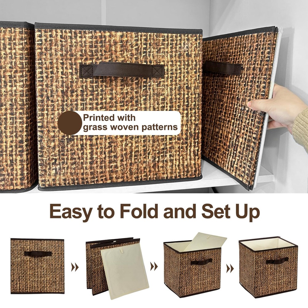11x11 Cube Storage Bins fabric 2 STURDY HANDLES - This cube storage organizer bins come with 2 sturdy handles on both sides, making it convenient for you to pull out the bins from the shelves. Dimension:11" x11"x11" SPACE SAVING - Cube storage organizer bins fit on your closet organizers, shelf baskets, bookshelf and so on. When not in use, it can be folded and placed flat, which helps you use it more conveniently without worrying PERFECT STORAGE SOLUTION - Cube storage bins for organizing and decluttering any space. Great for organizing and reducing clutter, use it to store clothes, underwear, socks, sweatshirts, toys, craft supplies and more IDEAL FOLDING STORAGE CUBES - Cube storage organizer bin is good for folding and soft, big space to collect lots clothes. Keep in the kid’s room, family room, or any room in the house. Breathable non-woven materials protect your items from dust and garbage If you have any questions about cube storage organizer bins, please feel free to contact us, we will try our best to solve it until you are satisfied. are always here to provide you with a satisfactory solution!