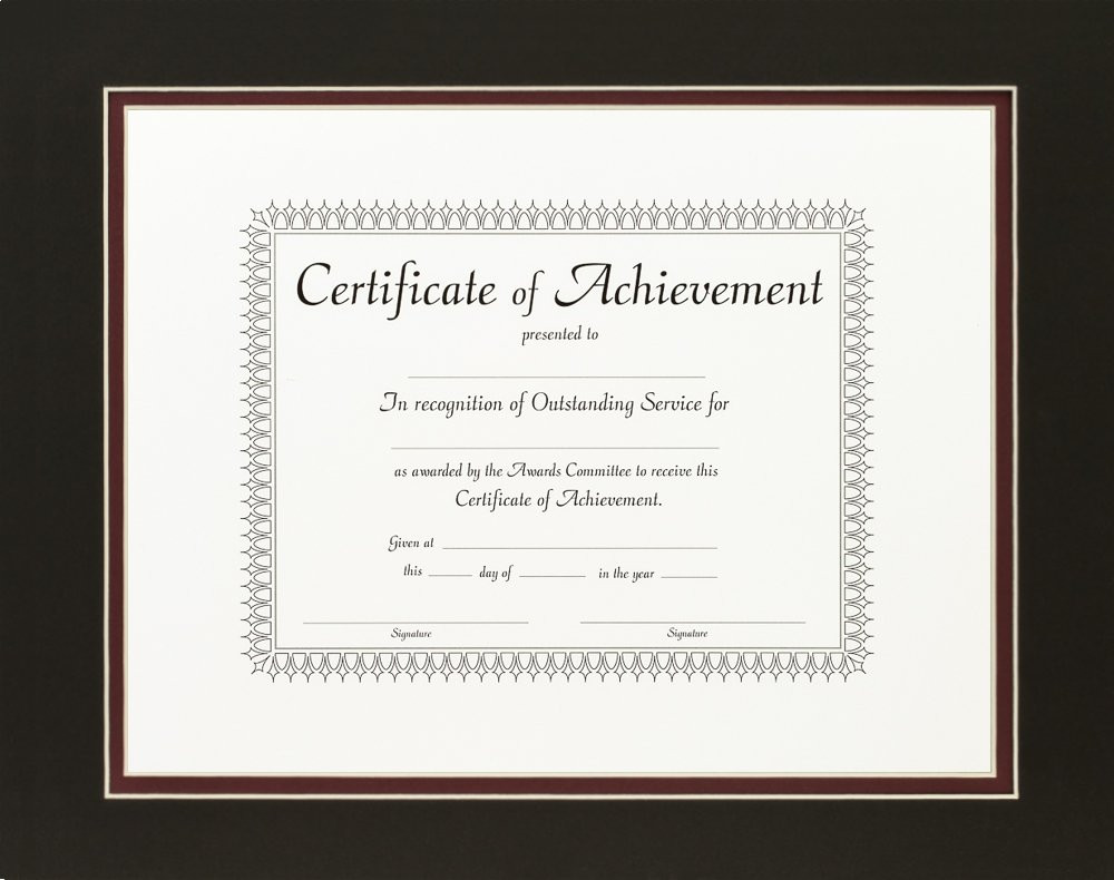 This brand new picture frame with double matting is manufactured in the USA at our facility in Ithaca, Michigan. Please Review the product listing details of the frame selection you have made. Our picture frames smaller than 12x18 inches (inside dimensions) are carefully and completely assembled with glass facing and a durable backing with two machine-cut, low profile wall hangers for both horizontal and vertical hanging. Our picture frames will compliment any space that you hang them in, they make great gifts and they will protect and display your documents, photographs and artwork for years to come. If you have any questions or comments, please do not hesitate to contact us. Feel free to visit our storefront and seller info pages to browse our extensive selection of frames, read customer feedback or Review our policies and contact info. At the end of the day we want you to be completely happy with your purchase. Be sure to add us to your list of favorites so you can easily find us the next time you need a quality picture frame. Thank you for shopping with us. We are and we are framing the world.One customer at a time. Display your achievements, certifications and memories with our framed single opening mats Complete framed matting kit includes: picture frame, double matting, glass, rigid black backing and pre-attached stamped hanging hardware Double matting has .25 inch reveal. Mat opening is designed to fit an 8.5 x 11 inch document. There will be approximately one quarter inch of matting overlapping the document on each side (actual mat opening is 8 x 10.5 inches). The overlap is necessary to prevent the document from falling through the mat opening. Frame moulding is 1.38 inches wide; black; smooth finish; wood composite Each mat is .05 inches thick; cream core; pH neutral; bevel cut openings