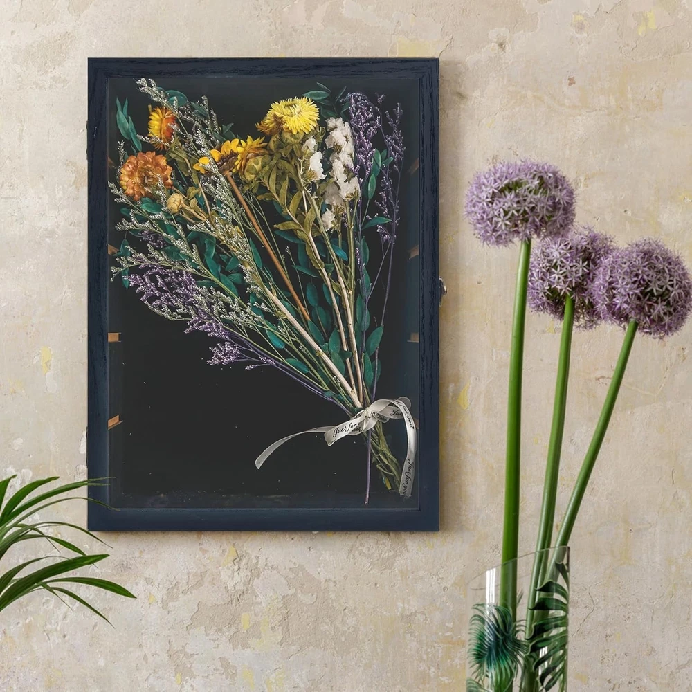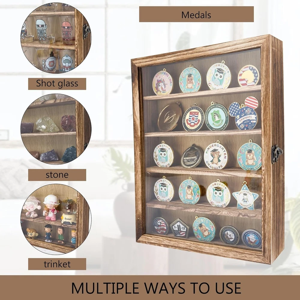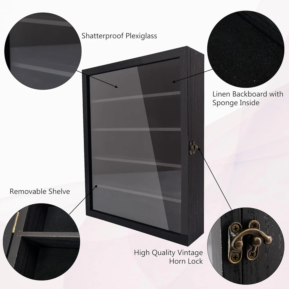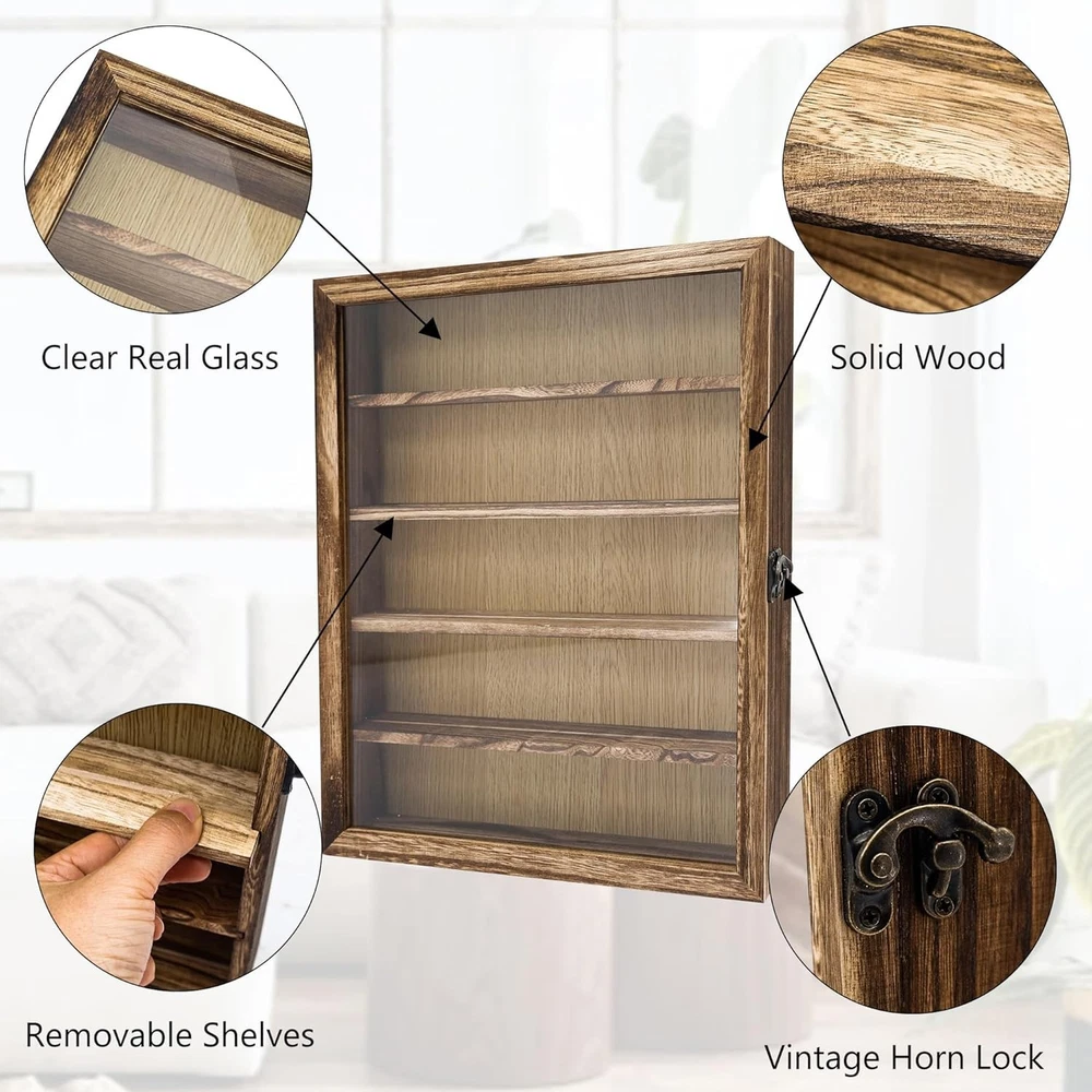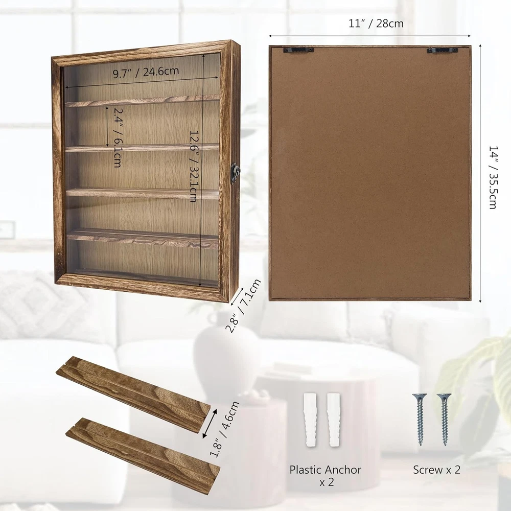 Wood Hodeframe Shadow Box With Shelves:Hodeframe trinket shelf with a crystal clear real glass front, the box gives you a great overview of the contents inside. You can use it to organize jewelry stands, miniature collectible items, eyewear, sunglasses, toys, figurines, and other collections Material & Size:Hodeframe shadow box frame is made of solid wood and high-quality shatterproof real glass, which is more anti-aging and anti-deformation,whole size of this display case is inner 11"x14"x2.8", size of deep depth shadow box is 9.7"x12.6"x2.2". Unique Design: The rustic shadow boxes display cases has 4 removable shelves. You are free to remove or put on the shelves, it turns into a wood shadow box or display shelf that can hold items of different heights. The shadow box frame with glass is great for storing collectibles! DIY Memory Display Box: Shadow box with shelves is perfect for storing your beloved items, suitable for displaying souvenirs, photos, miniatures, dried flowers, wedding bouquets, antiques, military, tickets, medals, crafts and other collectibles, DIY, a great way to display your precious memories. Super Gift: The large shelf shadow box is ideal gift for Valentine's Day,Mothers Day,Father's Day,Thanksgiving Day,Valentine's Day and Christmas, and the deep shadow box with shelves is the best gift for Friends,Anniversary,Wedding,Engagement and Birthday.