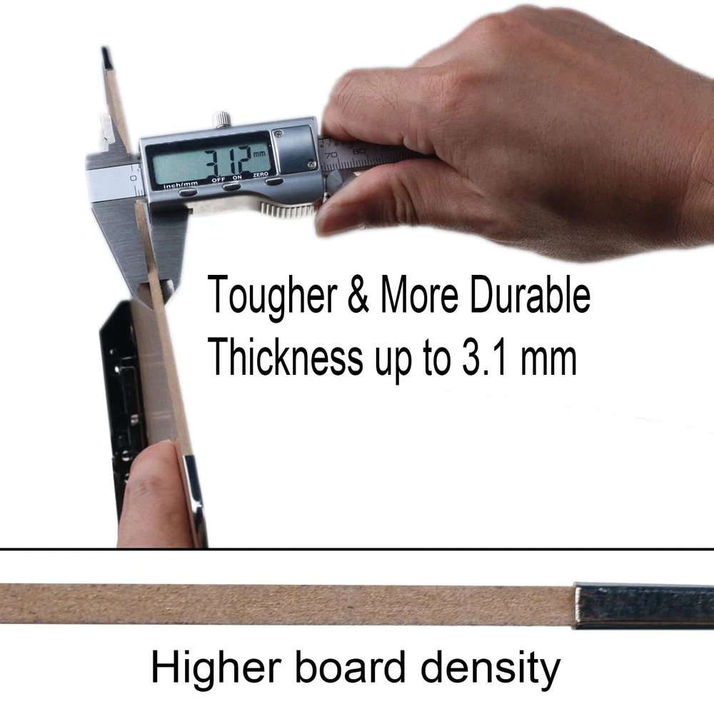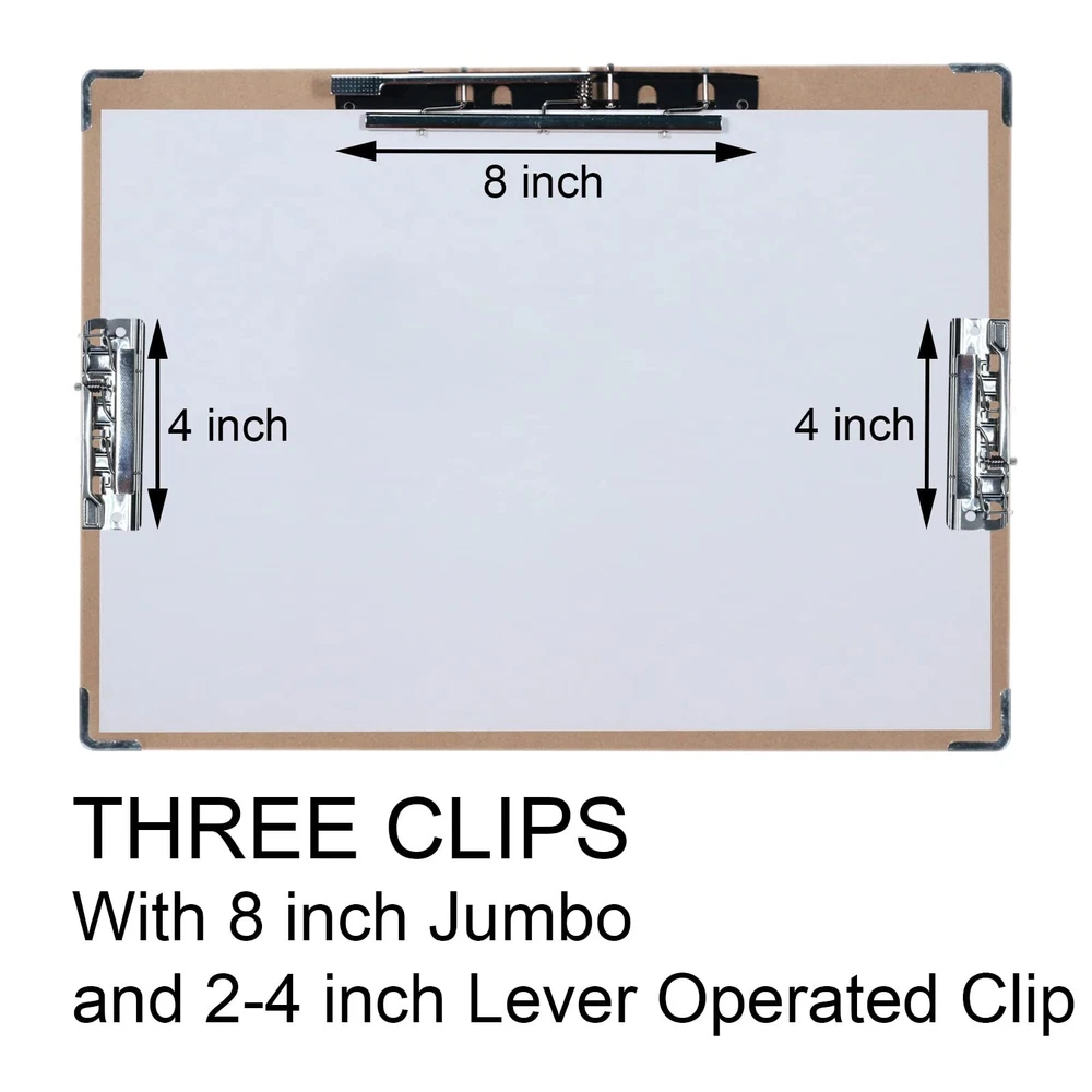 Jumbo lever clip wooden clipboard 12x18 three clips is a good helpers for design, painting and office work, but collisions at work are inevitable, and the corners of wooden clipboard is easily damaged. To solve this troublesome problem, Our engineering team developed this clipboard with hardware corner guards, refuse the damage of the clipboard corners. Worry-free use for a longer time. Happy to work every day. Professional supplies service professionals. Professional three clip design : 11 x 17 clipboards with 8 inch jumbo lever operated clip and 2-4 inch lever operated clips, securely holds up to 100 sheets. Prevents the wind from blowing away your files. Three clips are MORE SECURE. Corner Bumper Design: Long clipboard hardboard with Hardware Corner protector can effectively prevent the trouble of corner chipping. Worry-free use longer. Style And Size: 3 clip clipboard size 13 x 18 inches, suitable for US standard 11 x 17 paper ( A3 / ledger / legal size ). Art Clipboard thickness 3 mm, thicker, harder and more durable. Material: Drawing clipboard made of high-quality MDF Recycled materials with the fragrance of wood. Log color. Characteristic: Heavy duty ledger clipboard is made of recyclable high-quality MDF, harder, lightweight, Anti-wrestling, not fragile and non-deformation, but the hardboard clipboard is not waterproof. 3 clip clipboard is more secure. Professional supplies service professionals.