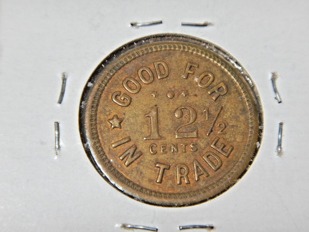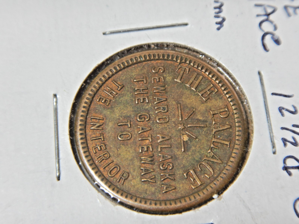 Item for sale is a 12 1/2 cents Trade token from Seward, Alaska. This one is in great condition. Has normal wear from use.