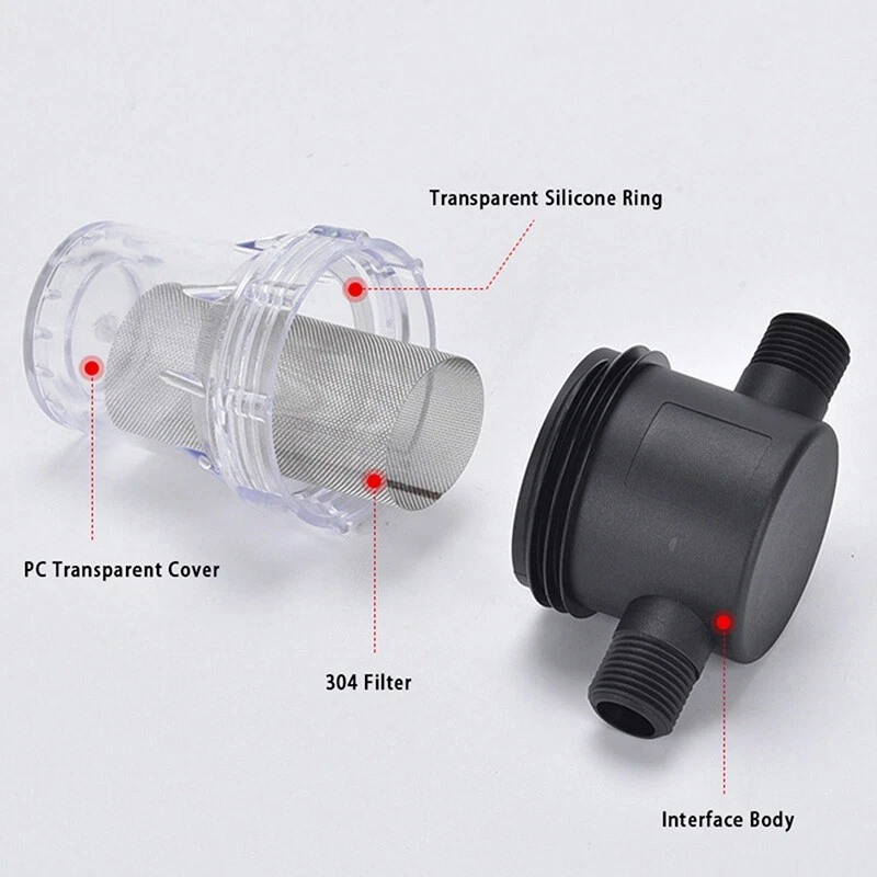 Description: Product Name: Water Pipe Filter Material: PC Color: Black + Transparent Threaded Interface: External thread Interface Size: 4-point Interface (1/2 inch), 6-point Interface (3/4 inch) Filter Mesh: 40 mesh, 80 mesh Uses: Suitable for garden irrigation, car washing, fish tanks, water tanks, etc. Features: The size of the 40 mesh and 80 mesh filters is moderate, and the flow rate will not be affected when filtering impurities. In winter or in the sun for a long time, please put a protective cover on the surface of the filter to prevent the shell from bursting. The garden hose filter is small in size, easy to clean and reuse, no need to replace it for a long time. The filter is available in several different sizes: 1/2 inch, 3/4 inch. The filter is suitable for garden hoses, pressure washers and RVs, which can effectively filter out impurities and increase the life of water equipment. Package includes: 1 X Water Pipe Filter Notice: 1. Transition: 1cm=10mm=0.39inch 2. Please allow 0-3cm error due to manual measurement. Please make sure you do not mind before bidding. 3. Due to the difference between different monitors, the picture may not reflect the actual color of the item. Thanks!