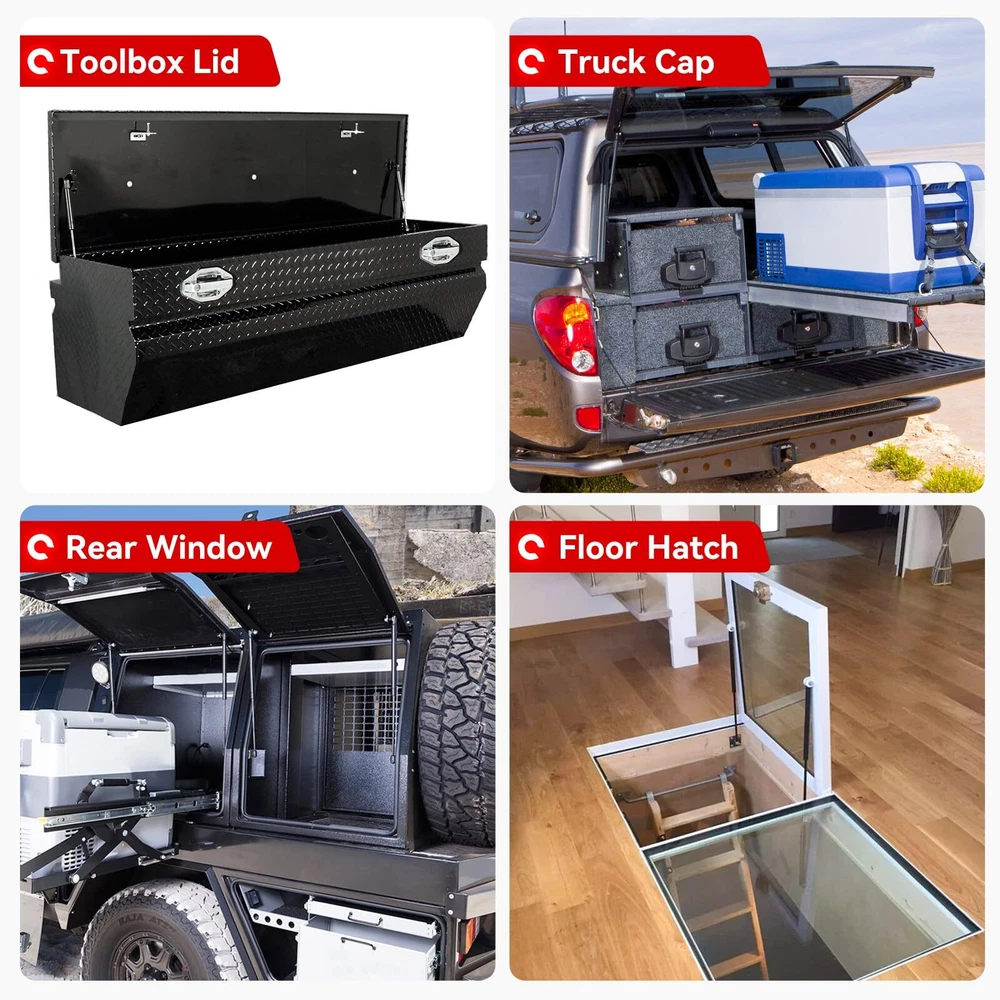 C16-12104 12 Inch 50Lbs/222N Gas Spring Struts Lift Supports for Camper Shell are ATC Snugtop Leer Truck Canopy Side Topper Rear Window Truck Cap Door Toolbox Lid 12" 2pcs by [ GAS SPRING PARAMETER ]: Force: 50 Pound 12 Inch per Strut. Extended Length( hole to hole): 12.2”, Compressed Length( hole to hole): 8.66”. Very Strong! Can not compress directly by your hands [ 50LBs GAS STRUTS ]: Suitable for Camper Shell, ARE ATC Snugtop Leer Truck Topper Rear Window, Truck Cap Door, Toolbox, Truck Topper Bed, Truck Canopy, Cabinet and so on. Scope of application: 40-55lbs. Your DIY can create more possibilities for Gas Struts, looking forward to your DIY creations [ CAMPER SHELL GAS SHOCKS ]: Exchange number: C1612104, C16-12104, 1579EQ, 1634EE, 4488, 613945, 647128, 7389IO, 7391IV, 7401QJ, 8195585, 8427IS, ML1555, ML3555, SG459005, SL1555, SL15-55, SL-1555, SL15555, SL3555, SL35551, SL35555. Package include Struts* 2, Installation Guide* 1 [ PREMIUM 12 INCH GAS STRUTS ]: Our products are suitable for various harsh weather environments such as outdoor heavy rain and minus 104℉. As the best and reliable gas spring manufacturer, will always stand behind you to provide you with the strongest support [ GAS STRUTS SUPPORT ]: 36 Months Replacement Support. Any issues, just mail us via Amazon, and we will solve for you within 24HRS C16-12104 12 Inch 50Lb/222N Gas Spring Struts Lift Supports for Truck Toolbox Topper Camper Shell Window Canopy by Shipping We offer FREE shipping on all orders! We ship within Three business days of payment, usually sooner. We use a selection of shipping services such as UPS, FedEx, USPS etc. We only ship to the lower 48 states, no APO/FPO addresses or PO Boxes allowed. Local pickups and combined shipping options are not provided at this time. Return You can return a product for up to 30 days from the date you purchased it. Any product you return must be in the same condition you received it and in the original packaging. Please keep the receipt. Payment We accept payment by any of the following methods: PayPal Please pay as soon as possible after winning an auction, as that will allow us to post your item to you sooner! Feedback Customer satisfaction is very important to us. If you have any problem with your order, please contact us and we will do our best to make you satisfied. Contact Us If you have any queries, please contact us via ebay. We usually respond within 24 hours on weekdays. Please visit our eBay store to check out other items for sale! Thank you for shopping at our store.