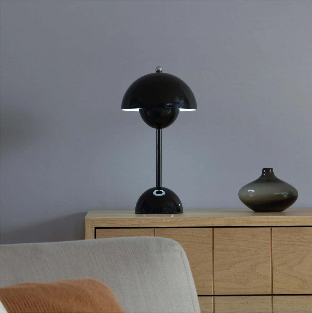 Introducing the Mainstays 11.8" Black LED flowerpot Mushroom Table Lamp—a sophisticated and versatile addition to your home decor. Equipped with a rechargeable battery and included USB cord, you can place this lamp anywhere you need. Enjoy three adjustable dimmable light modes to create the perfect ambiance for any occasion! The unique contemporary style of this lamp adds a touch of elegance and sophistication to your living space. From bedside tables to office desks, this table lamp is the perfect blend of form and function. Cordless Convenience: Enjoy freedom of placement with a built-in rechargeable battery, allowing you to place the lamp anywhere without the constraints of cords or outlets. Adjustable Dimmable Light: Choose from three dimmable light modes to create the perfect ambiance for reading, working, or relaxing. Contemporary Design: Elevate your space with the sleek and sophisticated black metal flowerpot design, adding a modern touch to any room in your home or office. Spot clean