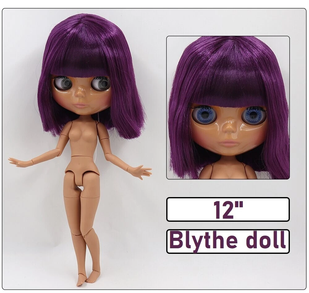 12" Blythe Doll Purple Hair Puppet Dark Skin Shiny Face BJD Toys Christmas Gifts There are just Limited quantity available! Get yours NOW before we run out!!! Step into a world of creativity and magic with our stunning 12-inch Blythe doll! Perfect for collectors and doll enthusiasts, this Blythe doll is ready to captivate hearts with her unique charm and endless possibilities for customization. Features: ✨ Expressive Eyes: Four different eye colors and positions with a simple pull of a string, reflecting her many moods and styles. 👗 Customizable Beauty: Change her hair, makeup, and style to create a doll that’s uniquely yours. 🌈 Premium Quality: Crafted from durable, high-quality materials to ensure she stands the test of time. 📏 Perfect Size: At 12 inches tall, she's the ideal size for both play and display. Why You'll Love Our 12" Blythe Doll: Endless Creativity: Perfect for photography, crafting, and artistic projects, she’s a blank canvas for your imagination. Community Connection: Join a worldwide network of Blythe enthusiasts who share your passion and creativity. Unique Gift Idea: A thoughtful and personalized gift for birthdays, holidays, or any special occasion, sure to delight both children and adults. Bring home the magic of the 12" Blythe doll today and dive into a world where imagination knows no bounds. Embrace the charm, creativity, and joy that only a Blythe doll can offer. Order now and let the adventures begin! Dolls are selling in nude, Not including clothes and accessories.