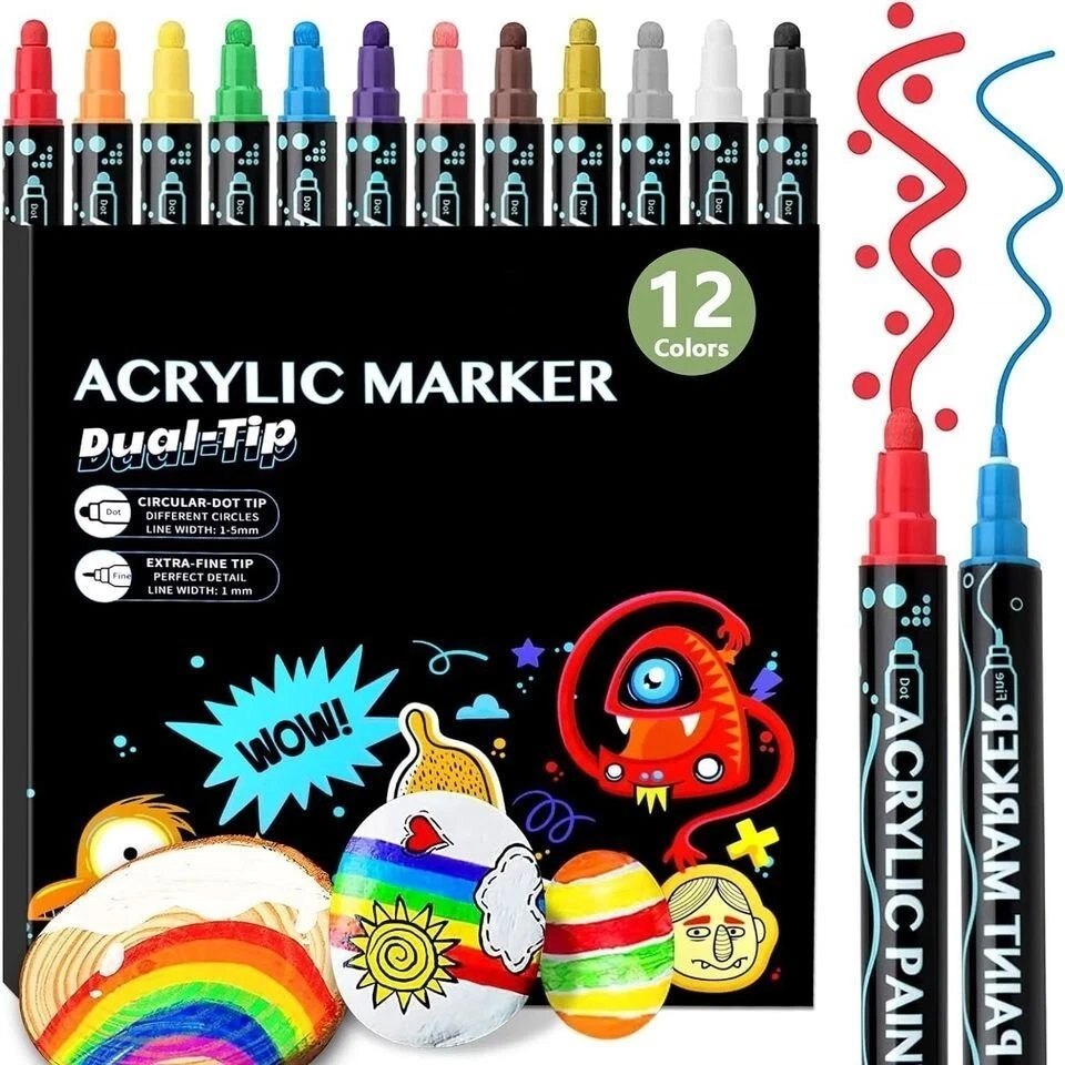 12 Colors Acrylic Paint Pens Markers Dual Tip Acrylic Paint Pens for Rock Paint