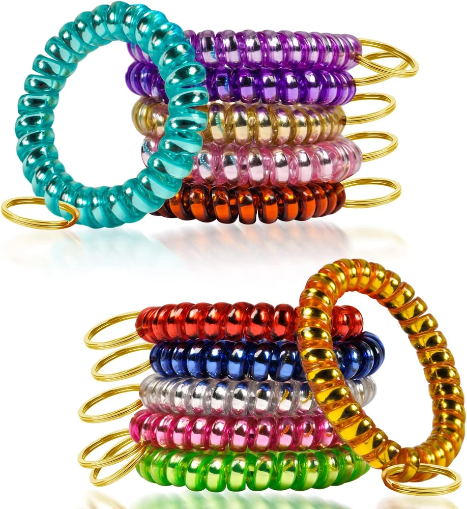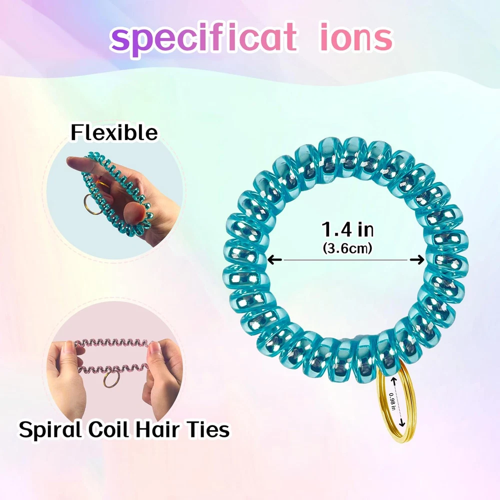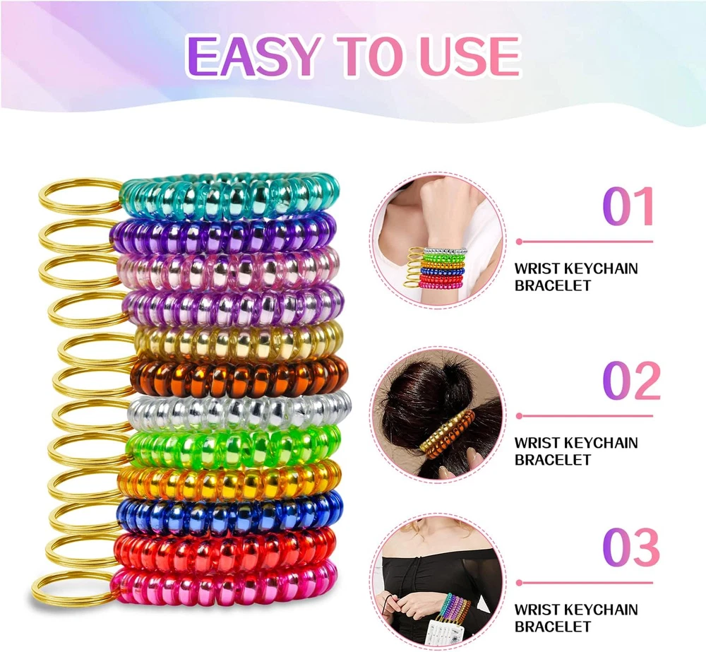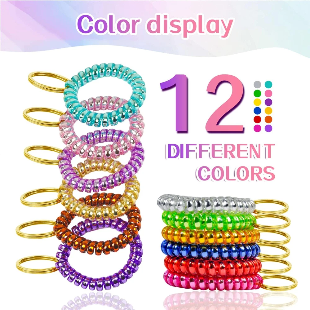 12 Colors Wrist Keychain Plastic Spring Flexible Spiral Wrist Coil Stretchable