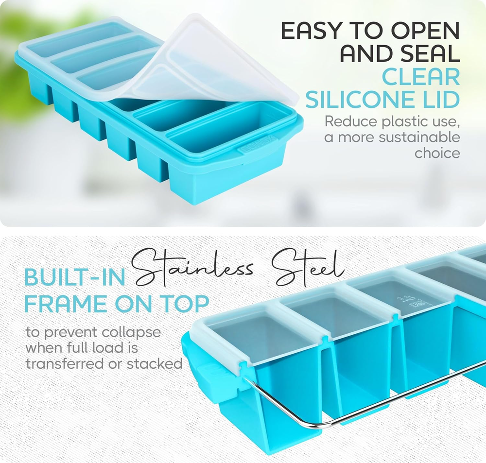 BPA-Free 1/2 Cup Silicone Freezer Molds with Lids Ideal for Meal Prep