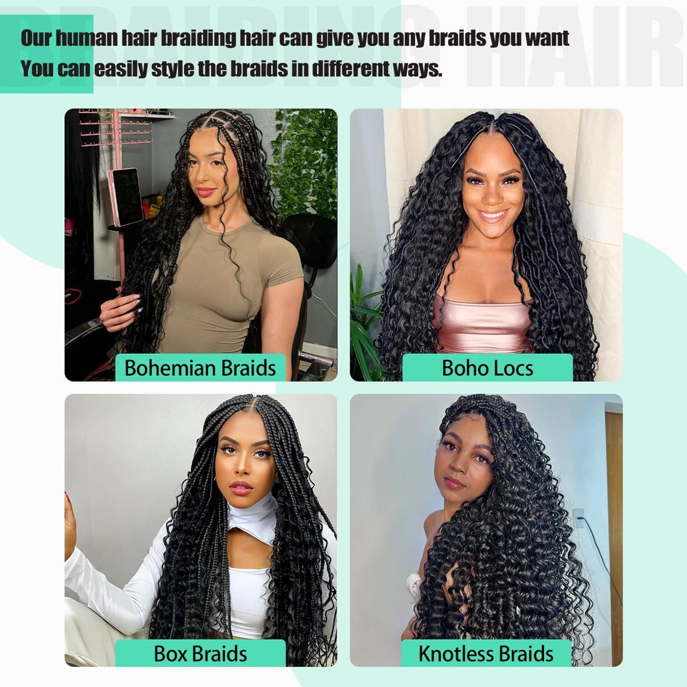 Human Hair Braiding Hair Specifications Brand Name: Beautypro Item Type: Bulk human hair for braiding no weft Color: #1B Black Weight: 100g (50g/bundles) deep bulk human hair for boho braids Length: 12inch Hair Mate rial : 100% Unprocessed Brazilian Virgin Human Hair Suggestion: For a full head braids , we recommend 2-3 bundles For a long and fuller head braids, we recommend 3-4 bundles If you need more other color s ,Human Hair Bulk, please click here .
