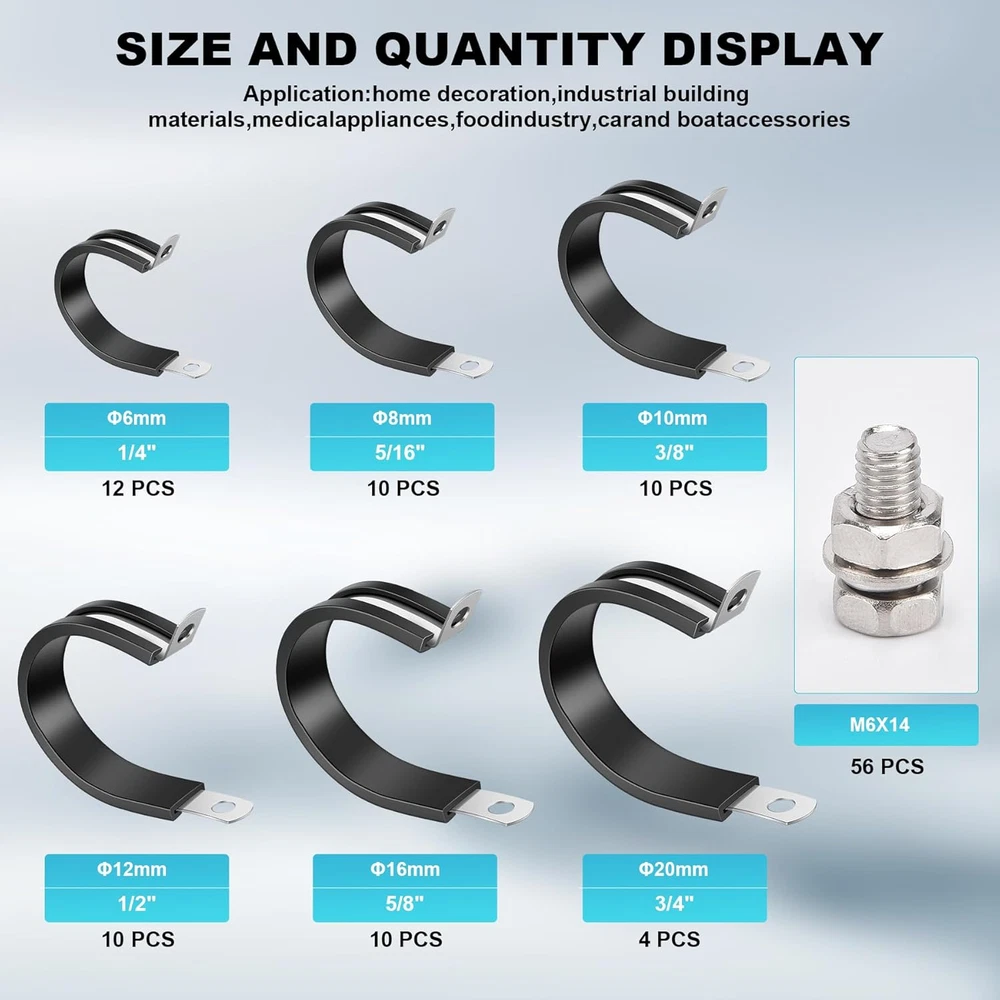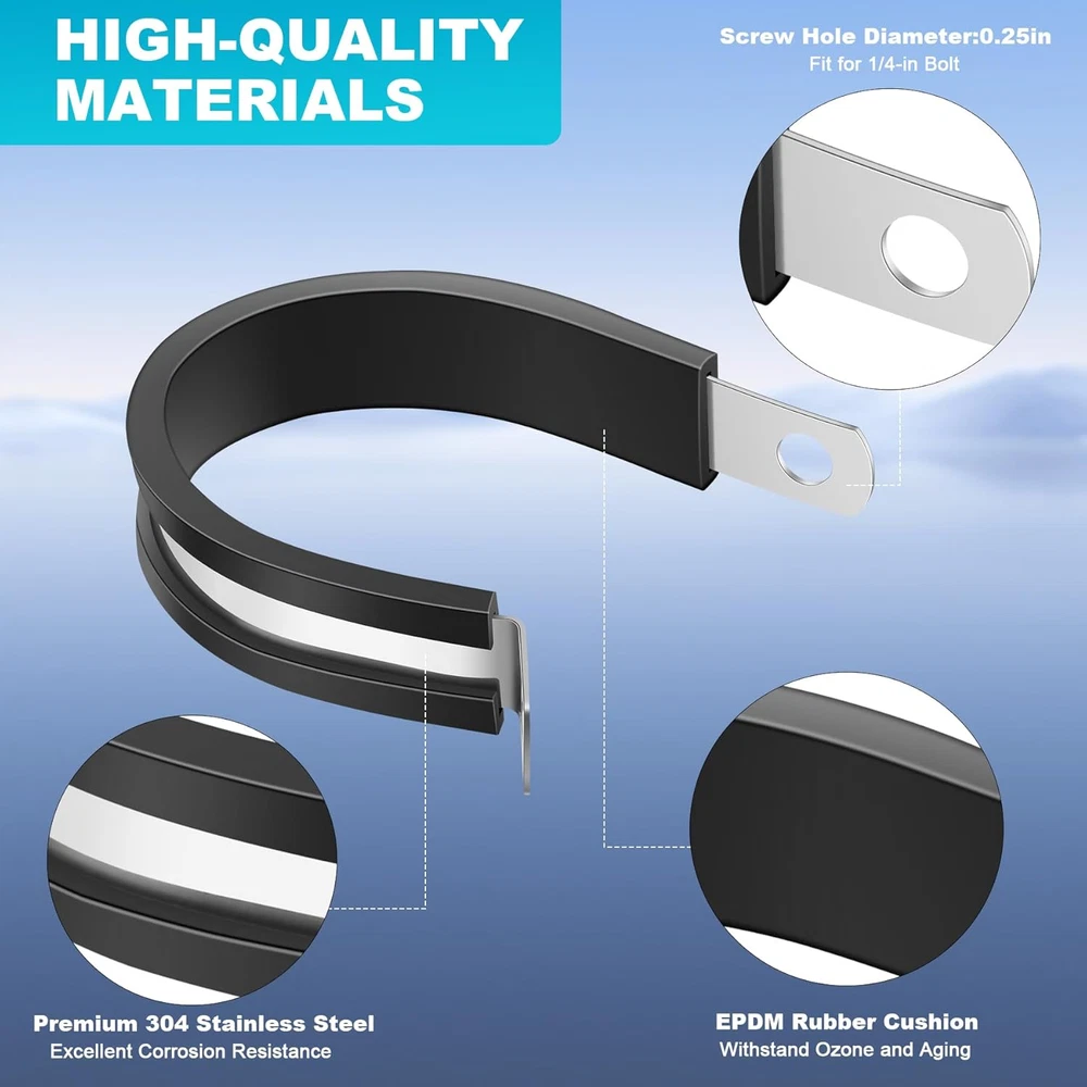 Store New Arrivals Add to Favorite View Feedback Contact 1/2 Inch 20PCS Cable Clamps, 304 Stainless Steel Rubber Cushion Insulated Wire Clamps,Ring Clamps, Pipe Clamps, Metal Clamps, Rubber Cushion Insulated Clamps, Wire & Cable Clamps, Durable Clamps Description Part Number 1/2-20 Batteries Required? No Item Package Quantity 20 Color Black Product Dimensions 1 x 1 x 1 inches Material Stainless Steel, Rubber Country of Origin China Item dimensions L x W x H 1 x 1 x 1 inches Item Weight 5.6 ounces Batteries Included? No Size 1/2-20 Cable clamp screw hole diameter: 6.5mm, suitable for M6 (1/4 inch) bolts to pass through. Easy to install: The R-shaped design makes it easy to control with a screwdriver and screws during installation and removal, saving time. The fixture can be firmly fixed in the correct position, achieving stable and reliable clamping. The R-shaped design makes the fixture flexible, easy to twist, bend, manipulate, install, and disassemble. They can also reduce compression and vibration during transportation, extending the lifespan of pipelines and fixtures. Widely used: very suitable for installing various circuits, such as hoses, steel pipes, aluminum cables. Applied in fields such as ships, windshields, automobiles, UTVs, and homes. Made of high-quality 304 stainless steel material and equipped with high-quality rubber pads. Salt resistant, rust proof, anti-corrosion, waterproof, and oil resistant. The fixture is sturdy, sturdy, and reliable. The high-quality rubber insulation layer on the fixture remains perfect. Secure the clamp firmly in place High quality - made of 304 high-quality stainless steel material and equipped with high-quality rubber pads. Salt resistant, rust proof, anti-corrosion, waterproof, and oil resistant. The fixture is sturdy, sturdy, and reliable. The high-quality rubber insulation layer on the fixture remains perfect. It is very soft and can protect the pipe well, and firmly fix the clamp in the appropriate position. The R-shaped design makes the fixture fashionable, flexible, easy to twist, bend, manipulate, install, and disassemble. They can also reduce compression and vibration during transportation, extending the lifespan of pipelines and fixtures. The fixture is of marine grade. Very suitable for applications in automotive, industrial, marine/boat, windshield, household and other fields, for wiring, cables, pipelines, racks, line management and repair. No matter in saltwater/air environment. ABOUT US We offer the best prices around on high quality products. Our E-store includes media such as books, movies, music and games while offering electronics, toys, sporting apparel, clothing, tools, general home, garden items and more. SHIPPING We are always working hard to ensure your package arrives as soon as possible. Please understand that some factors like weather, high postal traffic, and the performance of shipping companies are outside of our control. We offer free shipping to the lower 48 states and ship within 2 business days of payment, usually sooner. We do not accept P.O. Boxes. Please provide a physical address. RETURNS We offer a 30-Day Return Policy on items which you are not completely satisfied with. You have the option for a full-refund or an exchange of the item. No returns are available on items shipped outside of the USA. PAYMENT We accept PayPal. CONTACT US This page content is yet to come Please ad us to your favorite seller and visit again later Thank You CUSTOMER SATISFACTION We try our very best to make sure every customer is completely satisfied. If there's a problem, message us! We're happy to help.