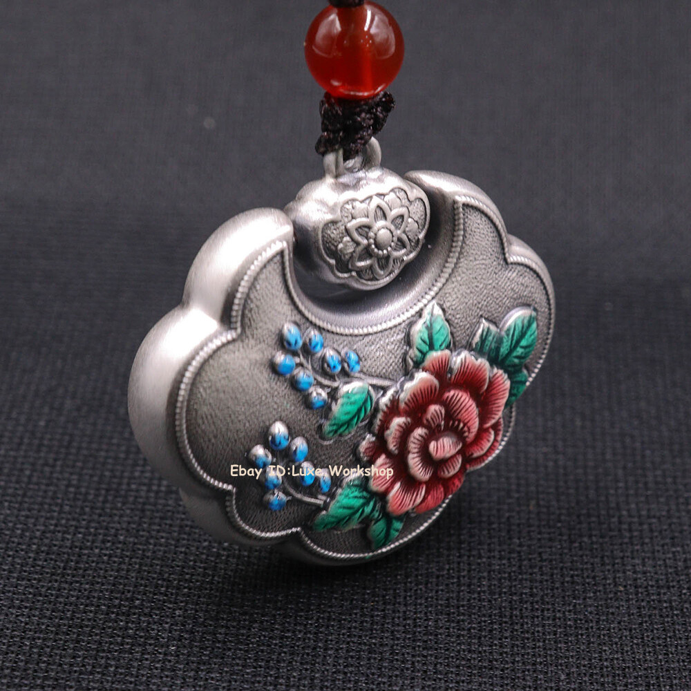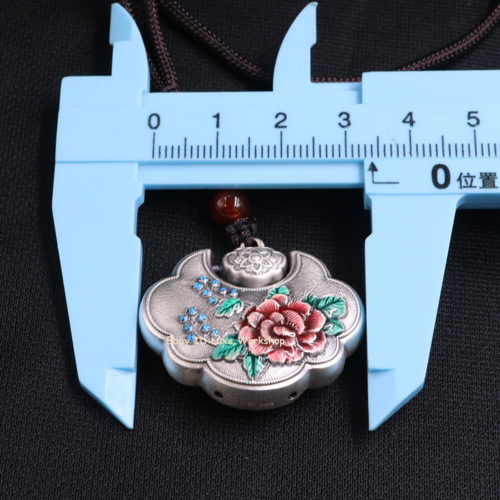 This stunning 999 pure silver pendant is a true work of art! The delicate peony enamel painting adds a vibrant pop of color against the bright silver, while the longevity lock design gives it meaningful elegance. At 1.2 inches, it's the perfect dainty statement piece that feels substantial (11g) without being bulky. Love that it comes with proper 999 silver stamps and care instructions—mine arrived shining beautifully. The vintage Thai silver look makes it stand out from typical jewelry. Already getting compliments!