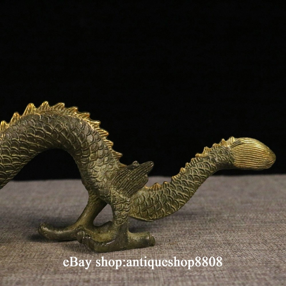 Antique Chinese Brass Flagon Statue with Double Dragons Playing Pearl