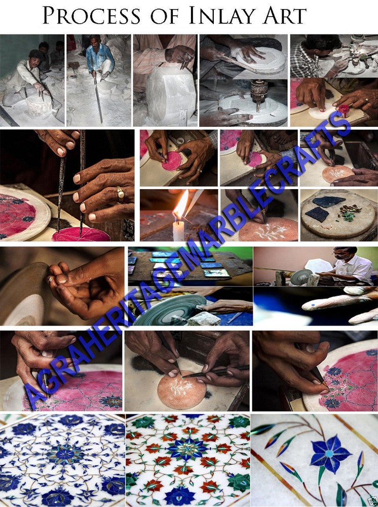 Product information Size: 12"x12" Inch Material: Marble & Semi Precious Inlay Stones Shape: Octagon Thickness: 10-20 mm Finished- Polished Marble Inlay Table Tops We are the Manufacturer of Marble inlay furniture,Pietradura Coffee Table,vase,chessboard,boxes,photo frames,patio,Foyer,dining tables,Bathroom tiles,Back splash,Floor medallions & lots of exclusive handmade home decorative,Garden decor & collectible items For interior designers& Architects.This Beautiful art is a dying in Agra,India & We are trying our best to keep this beautiful art alive. They can also be placed outdoors in the garden, as marble is stain free, offers great resistance to the forces of nature, and can withstand heavy temperatures. We also meet customized requirement and offer our marble table tops at industry leading prices. Process of Making Marble Inlay We are inlaying semiprecious stones in three different colors of marble White Marble,Black Marble & green marble. The Marble used to inlay the semiprecious stone comes from city of Makrana, Rajasthan India. First we cut the marble in different shape example Round,Octagonal,rectangle,oval & square shape. After cutting the marble we paint the surface of marble with Hina(red Color) so we can sketch the geometry on the surface of Marble. With the Help Of emery wheel we cut,polish & shape the semiprecious in different forms of flowers,buds,leafs & stems all the cutting of the semiprecious stones are manually cut by the artisans. After cutting the semiprecious stones we assemble them to complete the motif & then the semiprecious stones are placed on the surface of marble so we can trace them on the surface of marble to make the exact size of the cavities once the stones are traced we remove the stones from the surface of marble & then manually we chisels the marble with the diamond chisels & tungsten carbide chisels once the cavities are completed we place the semiprecious stone in the cavities to check the depth of the stones. When we are fully sure that the stone fits well in the cavities we use special kind glue to fix the semiprecious stones into the marble. After completing the inlays into the marble we first rub the surface of marble with sandstone & then we polish the surface of marble with sandpaper which brings the natural shine on the surface of marble & to the semiprecious stone & we use wax polish to make the surface shiny. Most interesting expect of this pietre dure( marble inlay with hard stone) all the designs are made by the artisans are purely an imagination of artist once made they cannot make another one exactly the same it will look similar but will not be the same. This beautiful art is a dying art of Agra,India the artisans those make this beautiful art are the descendants of those families who built the Tajmahal in 17 century Tajmahal is a monument of love & you can easily see the artwork done with the same technique on the walls of the Tajmahal. I Invite you to come to Agra,India & visit the beautiful Tajmahal & you will surely be impressed & we request you give us a chance to show you the true handmade art of Agra by our artisans. When you are purchasing this beautiful handmade Marble inlay art you will always be happy because all the pcs made by our artisans with love,hope & happiness. You will always be enjoying the beautiful handmade marble inlay artwork secondly you will be supporting the local artisans of Agra,India to keep this beautiful dying art Alive. All the purchase benefits the artisans & the buyer as there is no middle men in selling & buying. USE OF THE PRODUCT It is beautiful for Home & garden decorative handmade Inlay Art add Royal Ambiance to your Home. You can use this as a Dining/Coffee Table, Side Table, End Table, Corner Table & Hotel, villa, home use, hall Flooring / Walling, corridors, vestibules of apartment or villas in the external & interior decorations. Note We welcome your personalization request (custom request) as per your size, shape and design but you have to pay spare money. Buyers are liable for any customs and import taxes that may apply. I'm not liable for delays due to customs. This is only table top which does not include any wooden, marble legs/base/stand. if you like to buy marble or wooden legs/base/stand you need to spend spare money for it. Marble inlay handicrafts & other natural marble products are handmade products, colors of semiprecious stones & marble used may slightly vary from the image shown. Equipment & accessories are used only for photography purpose which do not ship with the product. We are unable to ship to a PO Box address & for Russia, Brazil country we need firm entity name or business name parcel will not go to individuals name. If you have any query please feel free to contact us. Shipping & Packaging For shipping we use DHL & FedEx Export packing sealed wooden, crate with foam plastic straps outside. If there is any Local Tax, Custom Duties or Vat at the destination, it will be paid by the buyer Inspiration/Story Behind This Product This beautiful art is a dying art of Agra,India the artisans those make this beautiful art are the descendants of those families who built the Tajmahal in 17 century Tajmahal is a monument of love & and one of the seven wonders in the world you can easily see the artwork done with the same technique on the walls of the Tajmahal. Wish you a very happy day & Happy shopping