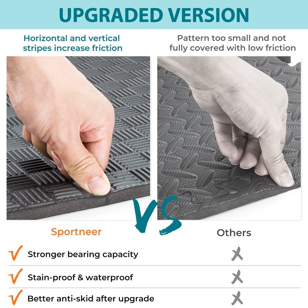 gym floor mats mat home tiles exercise foam flooring interlocking workout puzzle exercise equipment thick gym workout mat exercise mats foam floor tiles eva foam gym flooring for home gym gym mat exercise mat workout mats for home gym workout exercise mats for home workout garage floor mat foam mat interlocking foam tiles garage floor tiles treadmill mat ena floor tiles floor mats for home gym flooring mats gym floor mat foam tiles gym mat flooring puzzle mats for floor excersing mat interlocking floor mats floor mats for home gym foam puzzle floor mat workout mats foam tiles for floor gym mats for home gym eva mats for gym home gym flooring foam flooring treadmill mat for hardwood floors exercise mats for home workout extra thick exercise equipment mat work out mats gym floor tiles workout floor mats for home gym gymnastics mat for home treadmill mats thick workout mat for gym work out matt for home puzzle piece floor mat mats for exercise equipment garage tiles exercise floor mats gym floor mats interlocking foam squares floor mat tile mat garage gym flooring exercise mat thick puzzle floor mat interlocking foam mats foam floor large workout mat gymnastic mats for home use workout mats for home gym thick eva tiles gym tiles squat mat weight mats for home gym workout pads for floor interlocking floor mats tiles puzzle exercise mat puzzle foam floor mat home gym mat home gym rubber floor mats weight lifting mats floor pads for gym foam flooring tiles 12 x 12 x 0.5 Inches Each Piece-12 sq.ft! Suitable for small spaces, such as placing a fitness bench Optimum Surface Protection: exercise floor mat can protect your floors from scratches, dents, liquids, pets, children and more! The 12-piece Ground Protector is durable, lightweight and non-skid for use anywhere indoors Easy Assembly: These easy-assemble pieces fit together just like puzzle pieces - minus the head-scratching! When you're done using them, just pull them apart and stack them up neatly for storage Ideal Size & High Density: These deluxe-size interlocking tiles measure 11.8in x 11.8in size, covering up to 12 square feet. Dense and protective of your floor, the 0.5in thick EVA foam provides support and cushioning for walking on Waterproof & Easy to Clean: Life's easier when your floor is simple to clean! The Multipurpose Exercise Floor Mat is stain-resistant and get clean fast with just a vacuum or damp cloth. Plus, no harmful phthalates means no worries for your kids Many Uses: Whether you need to protect your floor or, your feet from your floor, these eva foam mats provide a versatile range of uses in any location. Useful for around the house, or on the stage, garages, gyms, children's play rooms and everything in between. Finally, the floor protection you need