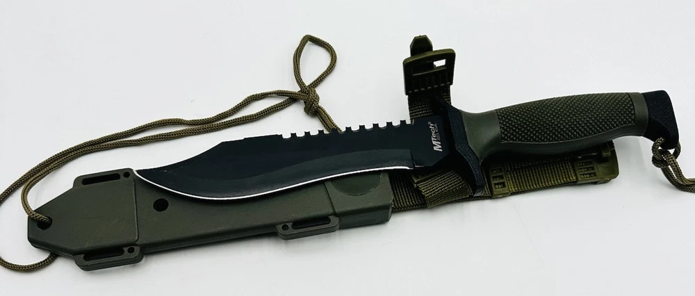 Crafted for versatility, the 12" Military Survival Bowie Hunting Knife to handle blade under7” is a robust cutting tool designed to meet the demands of outdoor enthusiasts and survival experts alike. Its stainless steel blade, coated in a tactical green finish, ensures durability and resilience against the elements. The full-length tang construction provides added strength and balance, making it an ideal companion for hunting, combat, or survival scenarios. The knife comes with a secure-fit sheath, allowing for safe storage and transport. The M-Tech brand is synonymous with quality, and this knife is no exception, featuring impeccable craftsmanship that promises reliability when you need it most. Whether you're on a hunting trip or in a survival situation, this knife is engineered to deliver a superior cutting experience.