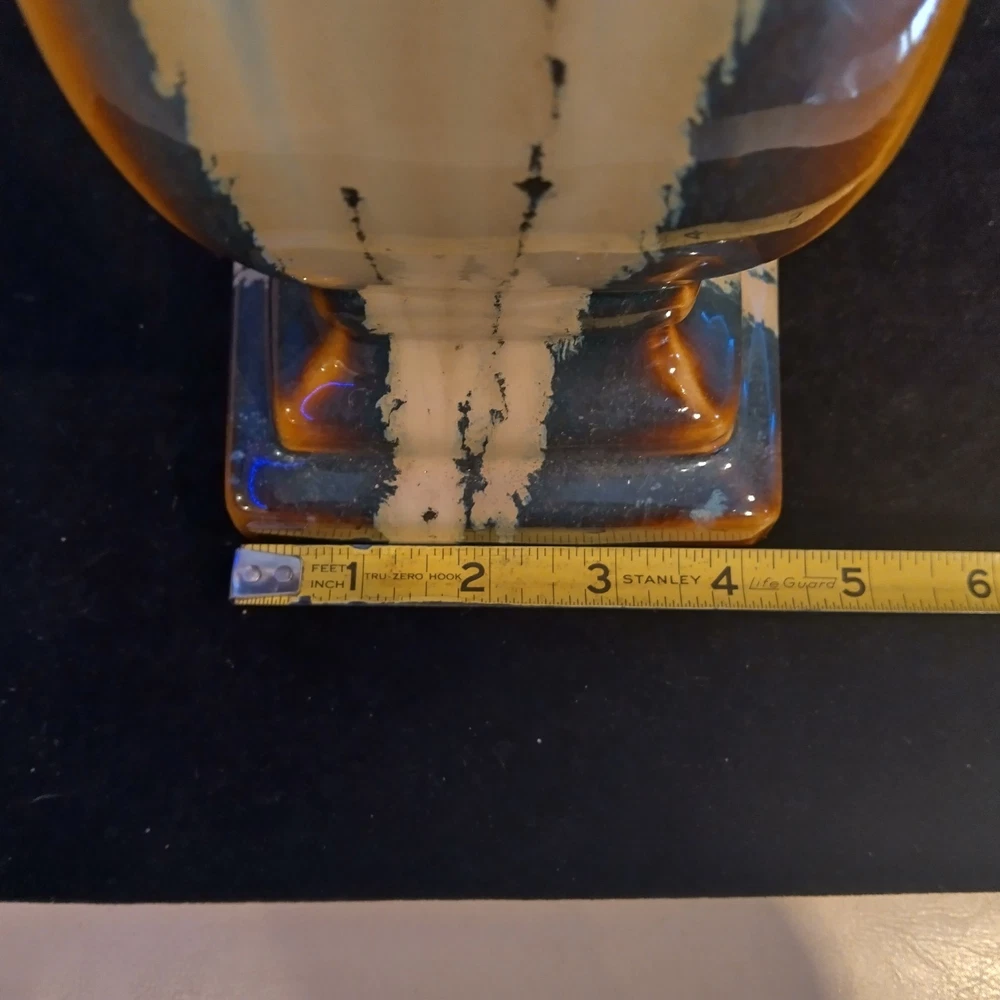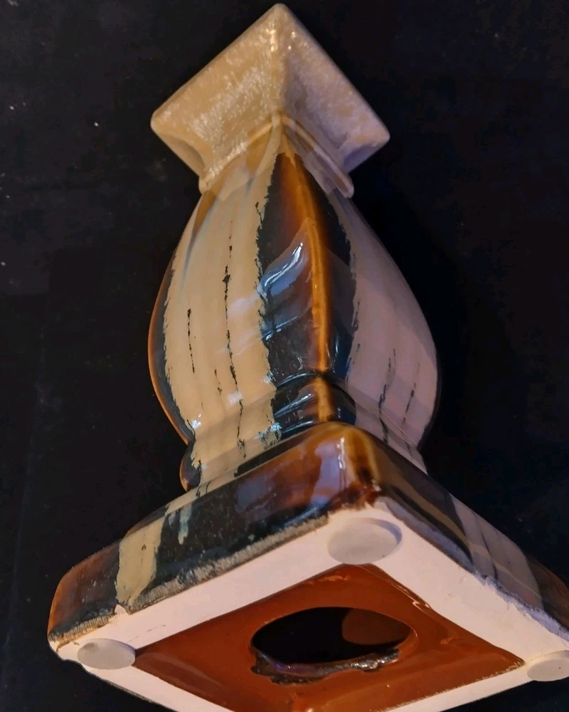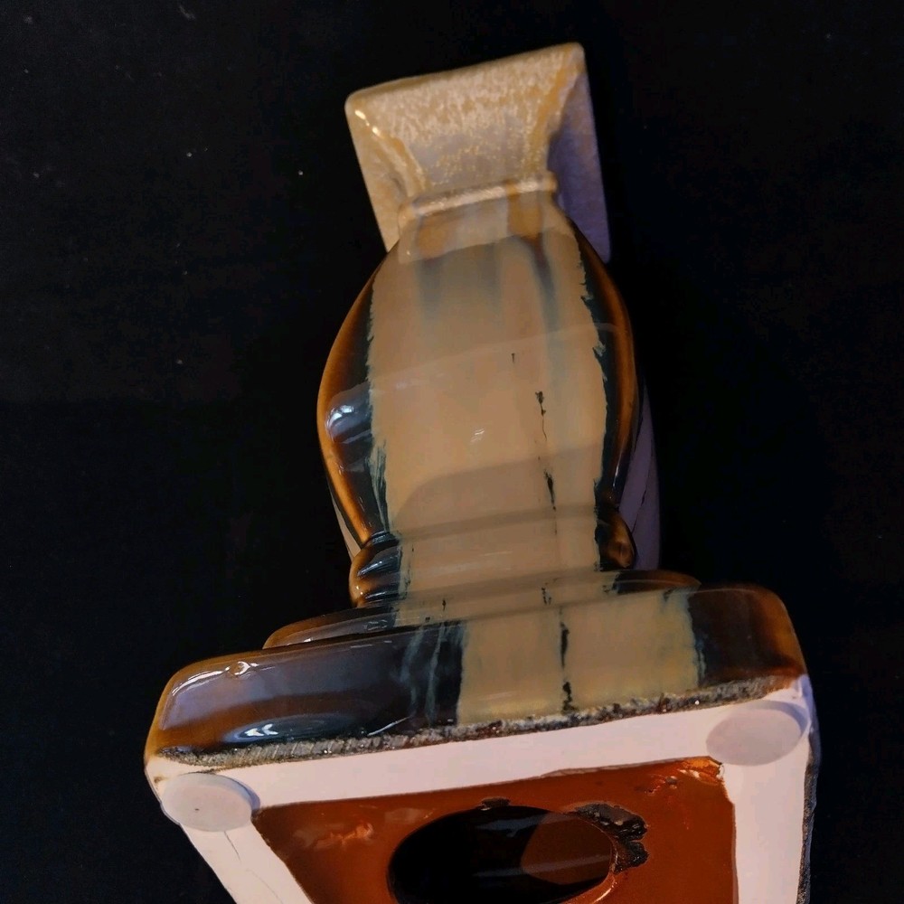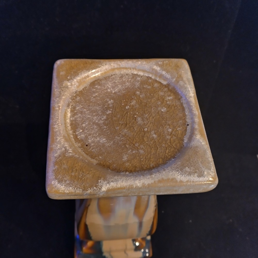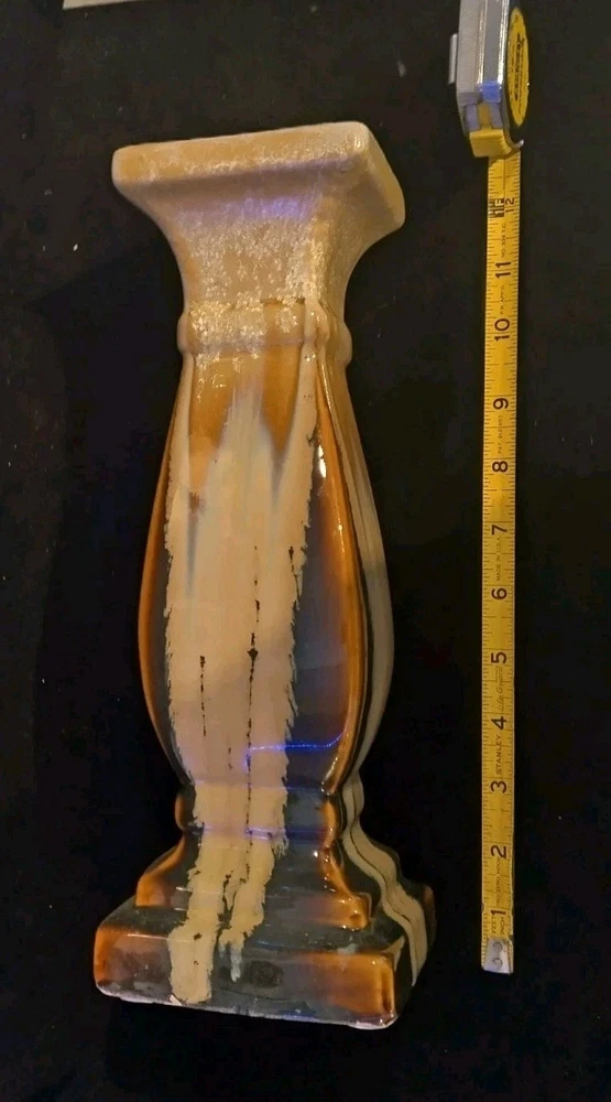 This beautiful pedestal candle holder is a stunning addition to any home decor. The multicolor design features a drip pattern. The glossy finish and arts & crafts/mission style make it a perfect statement piece for any room. Crafted from high-quality ceramic, this original piece is unsigned and weighs 3 pounds. The candlestick is 12 inches tall, with a diameter of 5 inches and has a production style of art pottery with a technique of pottery. It is a perfect item for those who appreciate art and want to add a touch of elegance to their home. Please see photos for exact condition. All offers considered.