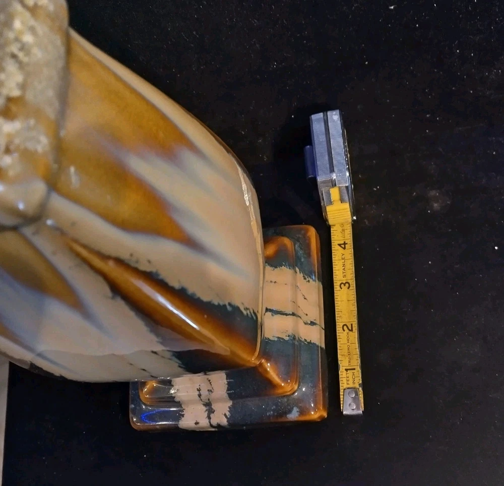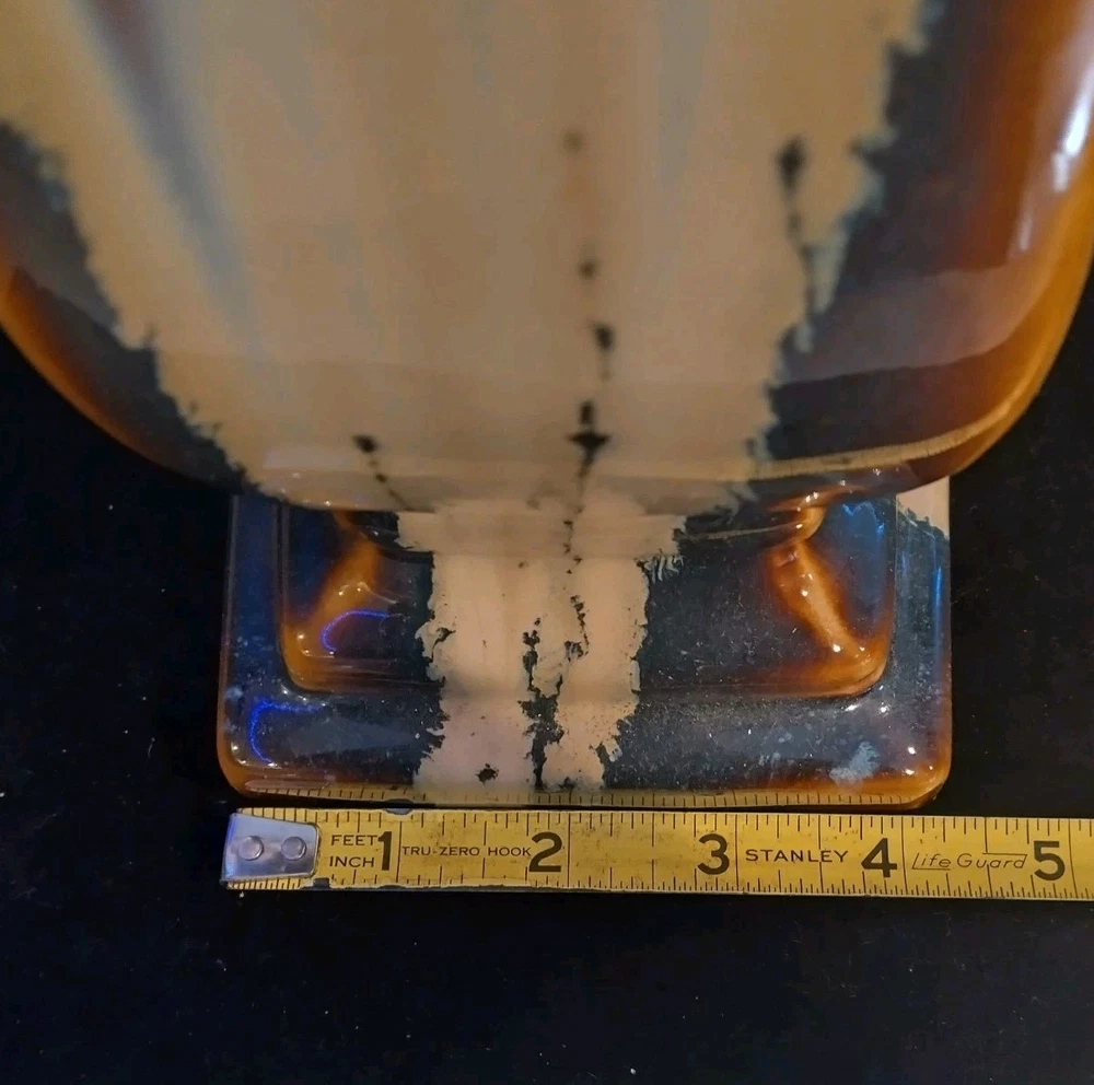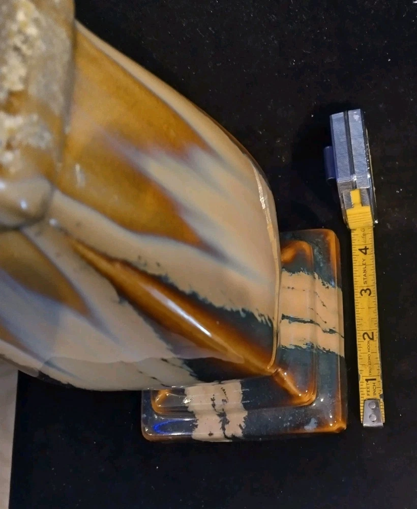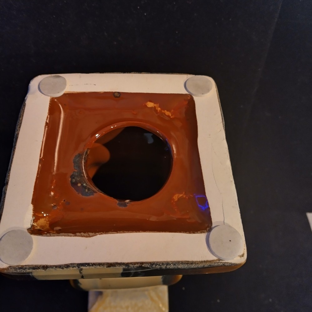 This beautiful pedestal candle holder is a stunning addition to any home decor. The multicolor design features a drip pattern. The glossy finish and arts & crafts/mission style make it a perfect statement piece for any room. Crafted from high-quality ceramic, this original piece is unsigned and weighs 3 pounds. The candlestick is 12 inches tall, with a diameter of 5 inches and has a production style of art pottery with a technique of pottery. It is a perfect item for those who appreciate art and want to add a touch of elegance to their home. Please see photos for exact condition. All offers considered.