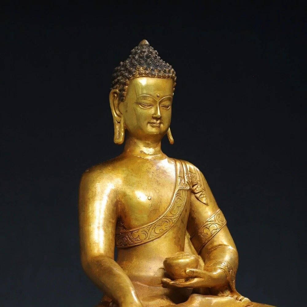 Size: Height: 30cm Wide: 24cm weight:2.35kg Material: bronze gilt NOTE: Withno wood stand!!!! Condition: Good condition Origin: China