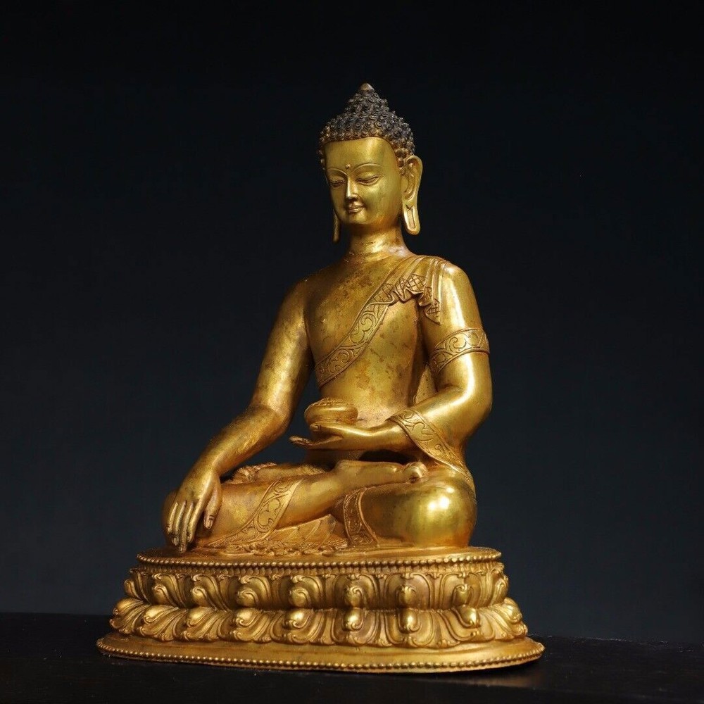 $ 88.78" Antique Tibetan Buddhist Bronze Gilt Shakyamuni Buddha Statue from China