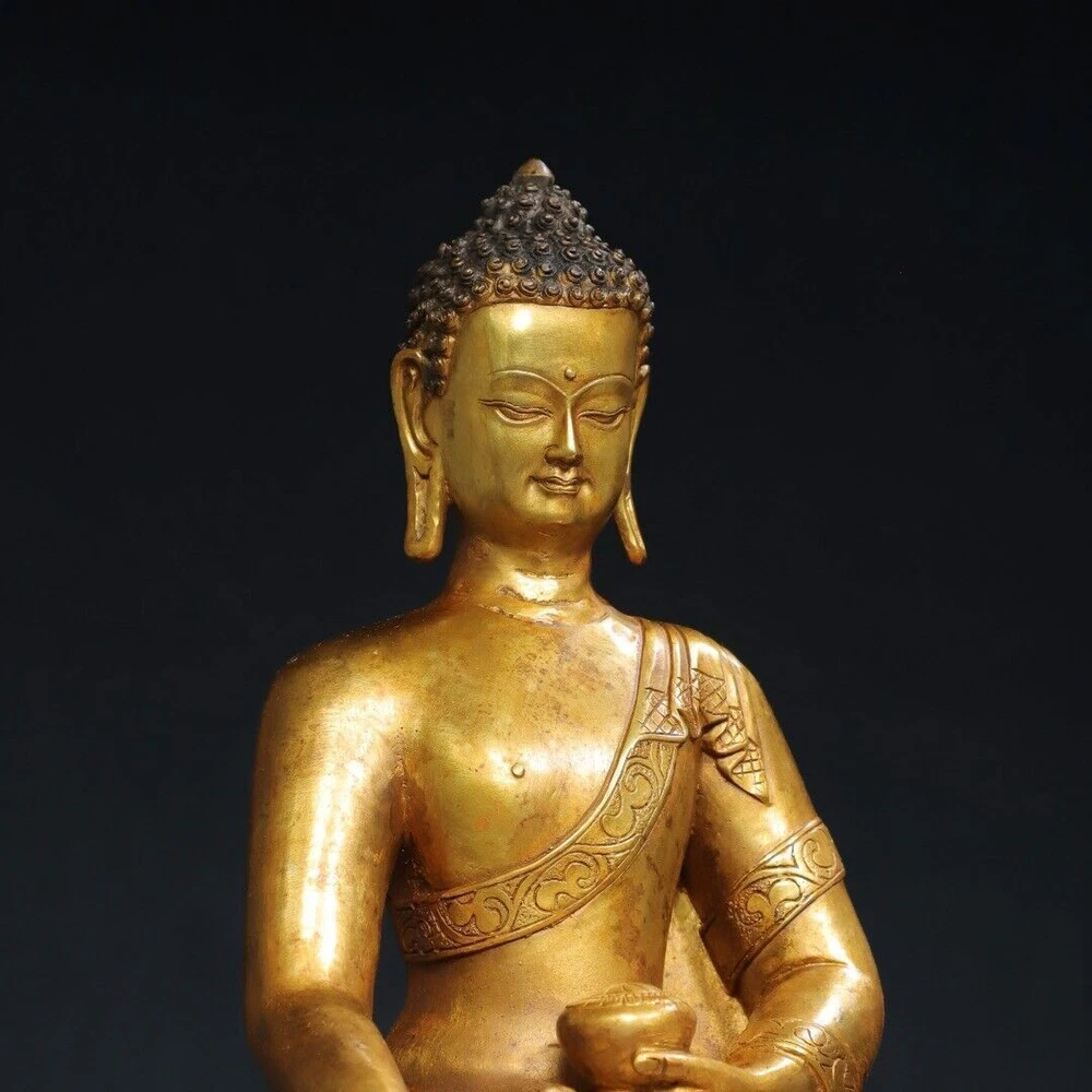 $ 88.78.3 Inch Antique Tibetan Buddhist Gilt Bronze Amitabha Longevity Buddha Statue
