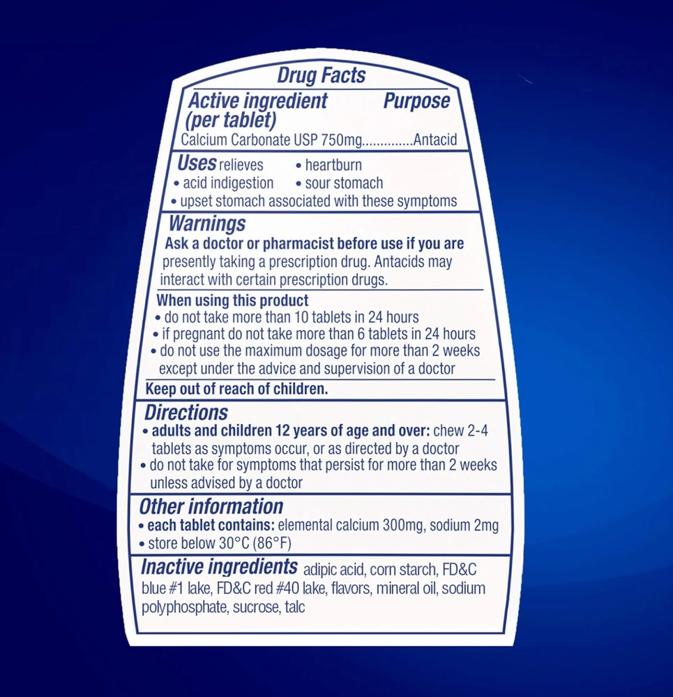 12 PACK Tums Extra Strength 750 Antacid Chewable Tablets Assorted Berries - 8 CT