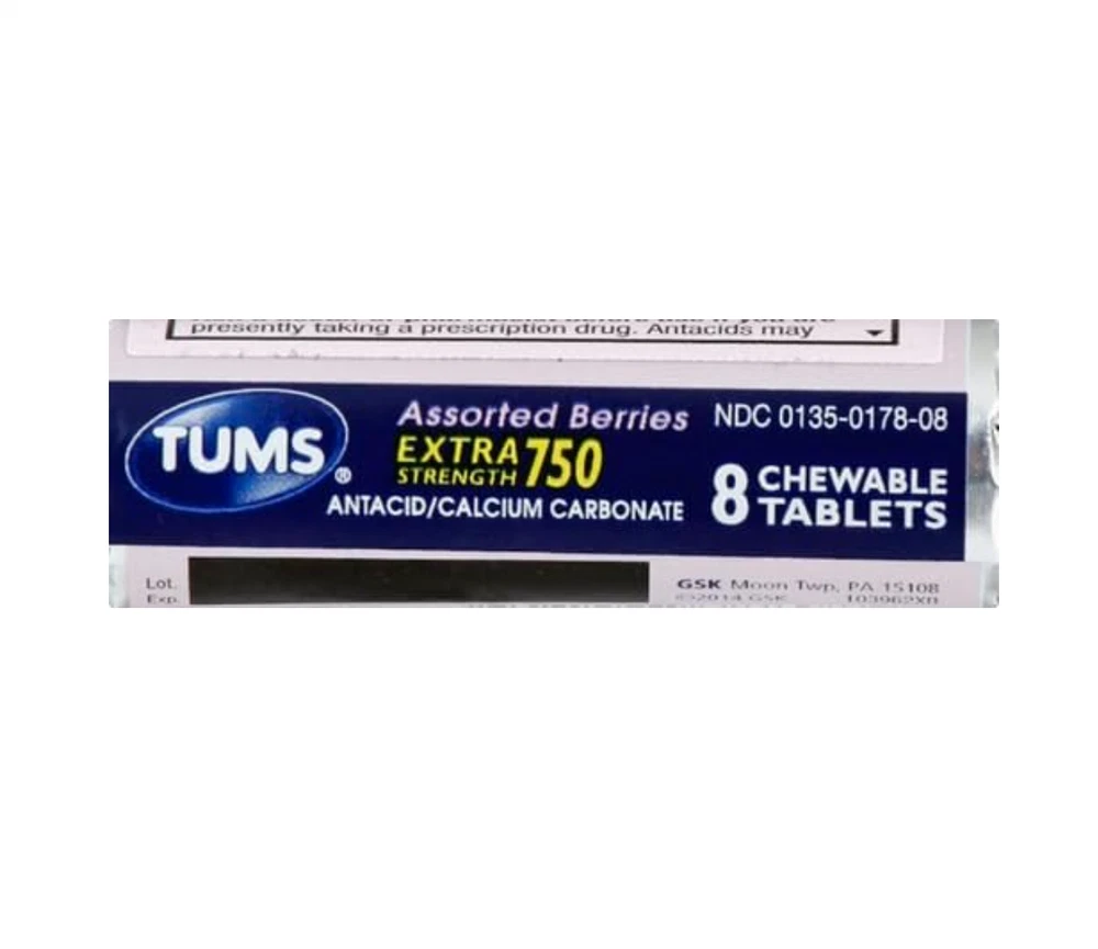 Type: Heartburn Treatment Dosage: 1 Expiration Date: 08/01/2028 Brand: TUMS