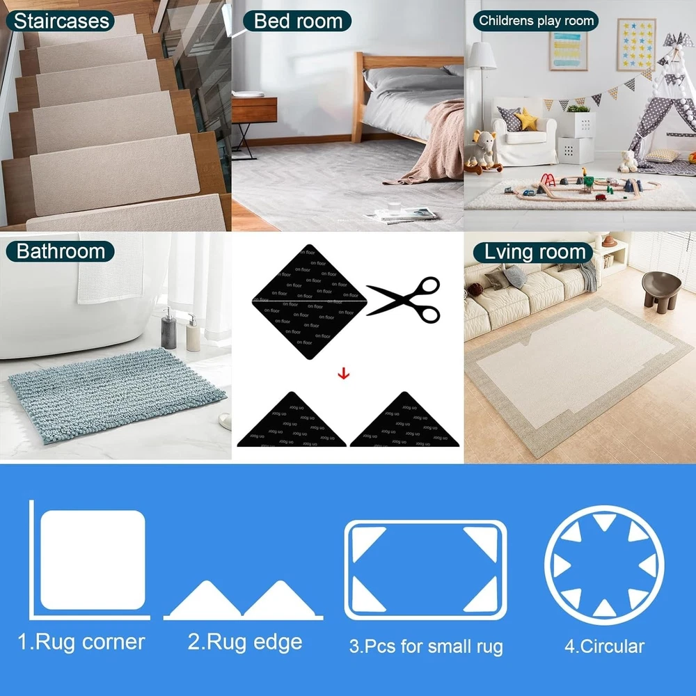 12 PCS Rug Pad Gripper, Washable Grippers for Rug Tape, Non-Slip Carpet Gripper