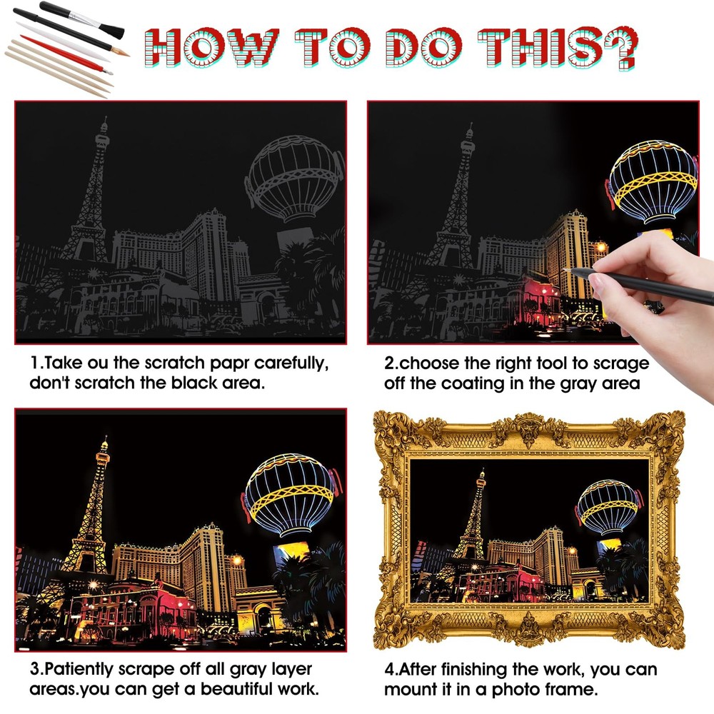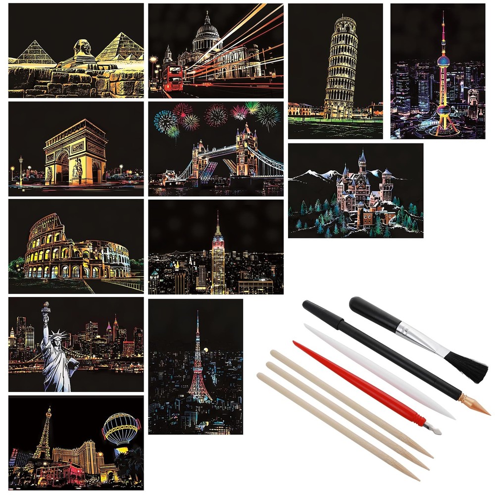 eBay Product Listing Welcome to Your Favorite My Store Your satisfaction is our top priority – Shop confidently 12 Pcs Scratch Art Paper Rainbow Scratch Paper with Scratching Tools Kit World Famous City Landmarks Scratch Art for Adults and Kids(A5 Size) Item Gallery Item Description Package Includes: you will receive 12 sheets scratch art paper (A5: 20 x 14cm/7.8 x 5.5in), 3pcs scratch pens (black, red, white), 2pcs wooden stylus for scratch art, 1pcs cleaning brush, which can meet your needs Different DIY needs High-Quality Material: these scratch art for adults are made of non-toxic colored hardboard and coated with black coating, which is safe and healthy for the human body and the environment, you can use it with confidence Easy to Use: you just use the wooden stylus to scratch on the cardboard, leaving the background surface, revealing a whole new world, easy to use and very artistic Widely Applicable: this rainbow scratch art for kids can not only be used to cultivate children's interest in painting and develop their creative and hands-on abilities, it is also a very good decoration, helping to relieve stress and relax Fun Gift: the magical scratch paper is great for creative and fun activities, and when you match the cards with the frames, they make a perfect gift for friends, kids, or family Special Features Specifications: Product name: 12-piece scratch paper set + pen set Product color: black Product material: paper + alloy Product packaging size: 27*20*1.9cm/10.6*7.8*0.74in Product size: Scratch paper: 20*14cm/7.8*5.5in Pen: Wooden: 14*0.5cm/5.5*0.19in Red: 13*0.8cm/5.1*0.31in Black: 17*0.8cm/6.7*0.3in White: 13.7*0.8cm/5.4*0.31in Brush: 12*1.5cm/4.7*0.6in Packaging list: 12 pieces of urban scratch-off set + pen set Our Guarantee To You We offer fast shipping, free delivery, and 100% customer satisfaction guarantee. Not satisfied? Return your item for free within 30 days. 30-Day Free Returns Shipping Details Items will be sent to your eBay address. Please verify before purchasing. Typical delivery within 3-7 business days. Professional shipping services used for all orders. We ship to the continental US (48 states only). Unable to deliver to Alaska, Hawaii, or territories. No APO/FPO or PO Box deliveries available. We use eco-friendly packaging Payment Options We accept these secure payment methods: All transactions securely processed through eBay's payment system. Simple Returns 30-Day Satisfaction Promise Contact us through eBay messages within 30 days of delivery. We'll provide return instructions and our address. Return the item in its original condition. We'll process your refund within 48 hours of receiving the item. Get In Touch Have questions about your order? Contact us through eBay messaging for prompt assistance. We typically respond within 24 hours.