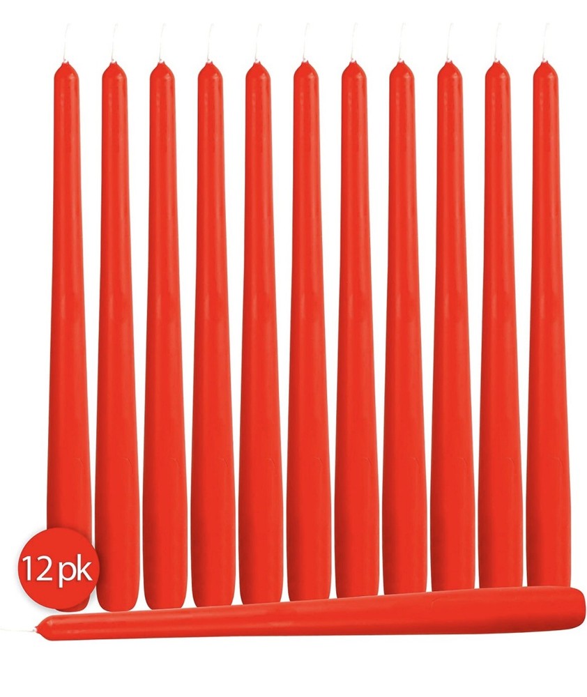 12 Pack 10 Inch Tall Red Dripless Unscented Taper Dinner Candles NWT