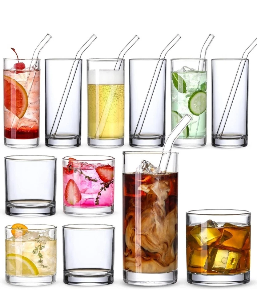 [ 12 Pack ] Glass Cups with Glass Straws, 12oz Highball & Rock Drinking Glasses, Everyday Drinkware Glasses Set, Cute Tumbler Cup, Kitchen Glasses for Iced Coffee, Water, Beer, Cocktail, Whiskey Gift. CLASSIC GLASSWARE SET : This comprehensive package includes 6 hurricane glasses, 6 rock glasses, 6 glass straws, and 2 clearing brushes, with simple, elegant linear design and has a classic look. Versatile glass set can meet all your demands for daily use or serving use, and enjoying your favorite beverages. For vibe, it is popular and chic SAFE, DURABLE, DISHWASHER SAFE : Our glasses set is made from high-quality, durable crystal glass that is safe, transparent. The thick bottom design not only enhances the texture of the glass but also provides an excellent feel. This delicate and durable glassware is perfect for both hot and cold drinks, and is easy to clean – simply hand wash or put it in the dishwasher MULTI-PURPOSE : Highball and rock glasses are beloved by families, restaurants, cafes, and bars alike. Whether you’re enjoying iced coffee, tea, juice, beer, cocktails, whisky, Mojitos, Collins, Bloody Marys, or any other holiday drink, our versatile glasses are perfect for any occasion A GOOD GIFT CHOICE: This glassware set makes a wonderful gift choice for any occasion like birthdays, Father’s Day, Mother’s Day, Christmas, and Thanksgiving. Thanks to its elegant design, practicality, and versatility. Whether you’re looking for a present for a housewarming, wedding, or holiday celebration, this set is sure to delight anyone who enjoys entertaining or appreciates fine glassware Payment ●Payment must be received within 3 business days of auction closing. ●Please Note: Import duties, taxes and chargers are not included in the item price or shipping charges. These charges are the buyer's responsibility. Shipping ●Items will be shipped within 3 days after the cleared payment. All items will be checked carefully and packages in good condition. ●We will ship to ebay's address only. Please make sure your address on ebay is the same with your shipping address before you pay. ●Shipping and Handling will be determined based upon the ship to address ●If you didn't receive your package, this time schedule, please do not hesitate to contact us. Within 24 hours we will try to update you with the latest tracking details of the shipment. Return and Feedback ●We sincerely hope that you can leave us a positive feedback. If, for any reason you are not satisfied with your purchase, please contact us through "Ask Seller Questions" before leaving neutral or negative feedback ●If you are not satisfied about your received item, please return it within 30 days for a refund. ●We will accept any return and give a full refund (without shipping cost) on any item. The item must be returned to us in original condition and the buyer need to pay return shipping cost