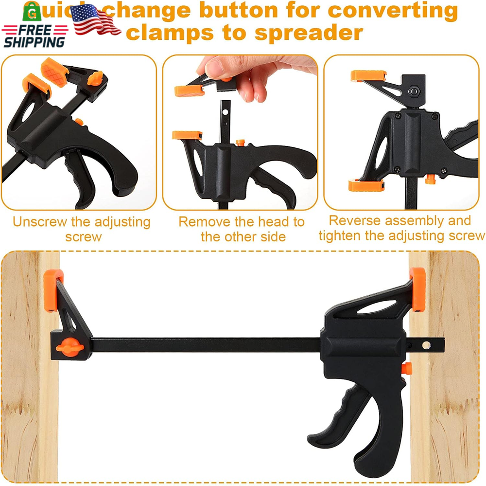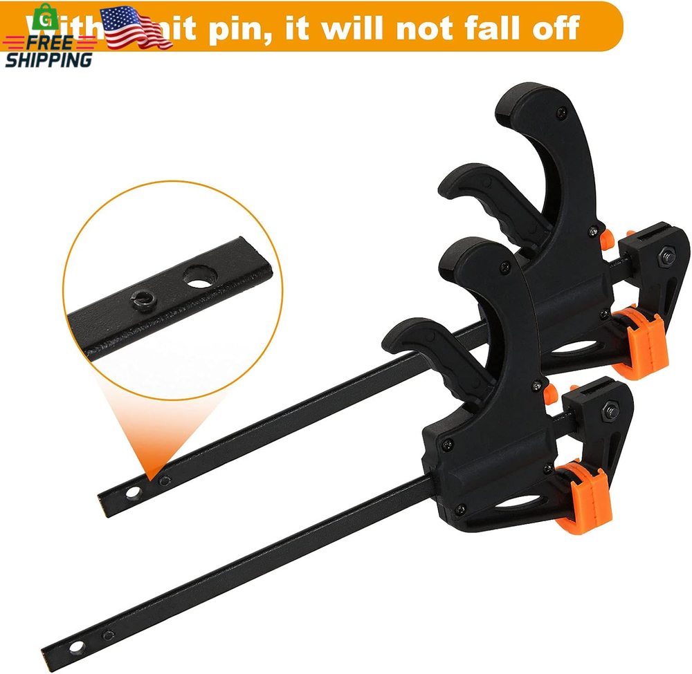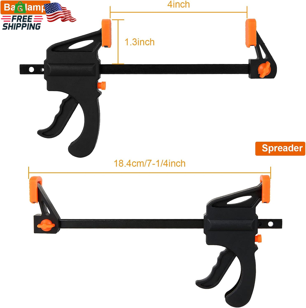 Store New Arrivals Add to Favorite View Feedback Contact 12 Pack 4 Inch Bar Clamps for Woodworking Quick Grip Clamps Trigger Clamp One Handed Ratchet Clamp, Mini Small Bar Clamps for Craft Wood Clamps for Gluing Description Item model number 4 Inch Bar Clamps for Woodworking Part Number DOUS-BarClamp-4inch-12pcs-210710 Style Modern Item Package Quantity 1 Color Black Set Name 12 Pack Brand LISHINE Material High Speed Steel Batteries Required? No Tensile Strength 65 Pounds Item Weight 0.87 Kilograms Batteries Included? No Package Dimensions 8.62 x 8.58 x 2.87 inches Manufacturer DAOST 【Bar Clamp 4''】Wood clamps woodworking capacity up to 4 inch. Throat depth: 1.25inch. 【Powerful Clamping Force】4 inch trigger clamp with up to 65lbs of squeezing force and a metal ratcheting mechanism, suit for light duty works, woodworking F clamps and DIY carpentry. 【Clamp And Spreader】4 inch quick grip clamps for woodworking is used in two ways, clamp or spreader. Easy to reverse jaws can turns clamp into spreading clamp or stretching tool. 【One-Handed Clamp】One handed release F clamp is adopted new grip and trigger design provides simple, you can operate with one hand. Spreader bar grip is comfortable to hold, press quick-release button to slide arm into desired length. 【Durable And Sturdy】Mini bar clamps are made of nylon body and high-quality hardened steel that provide great impact resistance. 4" One Hand Clamp/Spreader Woodworking Clamps, 65 Lbs Clamping Force, E-Z Hold Bar Clamps Set, Light Duty, 8-pack Light Duty, Ideal for Small Workplaces and Projects. Just simply press the button, then you can quickly release and adjust the clamp bars. The bar clamps can be easily converted to a spreader clamp. The main handle is perfect for ratcheting this clamp to the right amount of pressure. Soft jaw pads offer sure grip, but won't damage surfaces. Great woodworking tools for hobbyist, carpenters, cabinet makers, woodworkers, metalworkers and professional trades people of all types. Wide Application: - Light duty woodworking - Cabinetry - Metalworking, and other DIY needs Specification: Total length: 7.6inch/195mm Clamping Capacity: 4 inches Maximum Spreading Capacity: 8 inches Throat Depth: 1.25 inch ABOUT US We offer the best prices around on high quality products. Our E-store includes media such as books, movies, music and games while offering electronics, toys, sporting apparel, clothing, tools, general home, garden items and more. SHIPPING We are always working hard to ensure your package arrives as soon as possible. Please understand that some factors like weather, high postal traffic, and the performance of shipping companies are outside of our control. We offer free shipping to the lower 48 states and ship within 2 business days of payment, usually sooner. We do not accept P.O. Boxes. Please provide a physical address. For shipping outside of the continental USA, we only use eBay's Global Shipping Program.The item is shipped to KY and then sent to the rest of the world. International customers are responsible for all duties and taxes. Continue to check out in order to calculate costs for shipping the item to your country. Messages regarding eBay's Global Shipping Program MUST be directed at eBay EXCLUSIVELY. RETURNS We offer a 30-Day Return Policy on items which you are not completely satisfied with. You have the option for a full-refund or an exchange of the item. No returns are available on items shipped outside of the USA. PAYMENT We accept PayPal. CONTACT US This page content is yet to come Please ad us to your favorite seller and visit again later Thank You CUSTOMER SATISFACTION We try our very best to make sure every customer is completely satisfied. If there's a problem, message us! We're happy to help. WE ACCEPT Copyright © 2021 AutoDS. | All Rights Reserved