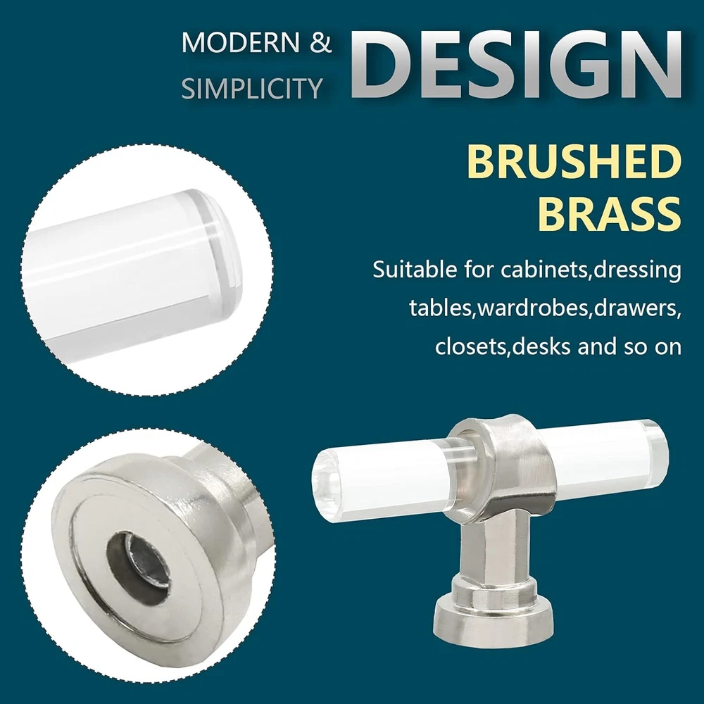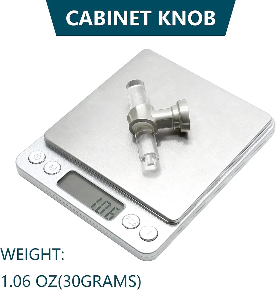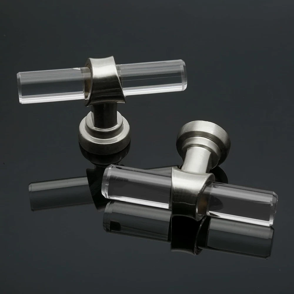 12 Pack Acrylic Kitchen Cabinet Handles Knobs Chrome Drawer Knobs T Bar Silve... T-Bar Cabinet Pulls Knobs Size: Total Length: 2-3/8"/60mm, Total Height: 1.4"/36mm, Rod Diameter: 0.43"/11mm, Base Diameter: 0.75"/19mm What You Will Get: You will get 12 pack acrylic drawer knobs, each knob is individually packaged to protect its beautiful appearance. At the same time, we provide mounting screws in two lengths, M4x1.06"" and M4x1.85"", which are suitable for cabinet doors of most thicknesses High-Quality Material: This cabinet knob is made of high-quality transparent acrylic and zinc alloy. The acrylic surface is not easy to leave fingerprints, and the brushed nickel solid zinc alloy base makes your knobs stronger and smoother. Very durable and stylish Fashionable & Elegant Appearance: Our round T-Bar cabinet knobs have crystal clear shapes and simple lines, which are very fashionable, luxurious and modern. Perfect for any kitchen cabinets, furniture doors, closets, cabinets, desk drawers, wardrobes or bookcases. Nice replacements for old cabinet knobs, give your cabinets a new looking! Excellent After-Sales Service: We focus on quality and after-sales service. If you are dissatisfied with our products, please let us know. We promise to give you 100% satisfactory after-sales service. No risk. Don't hesitate. Just buy it. Shipping We offer FREE shipping on all orders! We ship within Three business days of payment, usually sooner. Local pickups and combined shipping options are not provided at this time. Return You can return a product for up to 30 days from the date you purchased it. Any product you return must be in the same condition you received it and in the original packaging. Please keep the receipt. Payment We accept payment by any of the following methods: PayPal Please pay as soon as possible after winning an auction, as that will allow us to post your item to you sooner! Feedback Customer satisfaction is very important to us. If you have any problem with your order, please contact us and we will do our best to make you satisfied. Contact Us If you have any queries, please contact us via ebay. We usually respond within 24 hours on weekdays. Please visit our eBay store to check out other items for sale! Thank you for shopping at our store.