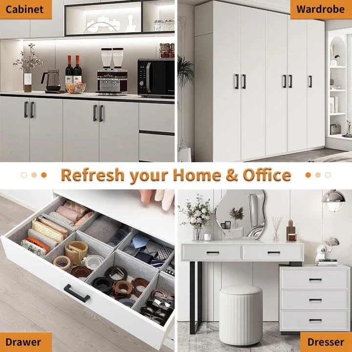 【Size】Hole Centers:5 inch(128mm) Overall Length:5-2/5 inch(138mm) Height:1-2/5 inch(35mm) Width:1/2 inch(12mm) 【Durable】This black cabinet pulls are constructed from stainless steel material for long lasting quality and durability.Individually wrapped to protect against scratches and the beautiful color. 【Material & Finish】Constructed from stainless steel,sturdy and durable for long lasting quality and durability.Black finish easily update your home decoration.Smooth edge provide comfortable feel. 【Easy to install】 We offer two sizes of screws for selection: 2pcs*1 inch(25mm) and 2pcs*1.8 inch(45mm), It will fit most cabinet and drawer. 【Widely Compatible】The square pull is suitable for modern or traditional style of kitchen cabinet,bathroom drawer,bedroom cupboard,dresser,wardrobe,closet and door.Black finish easily enhance your decoration.